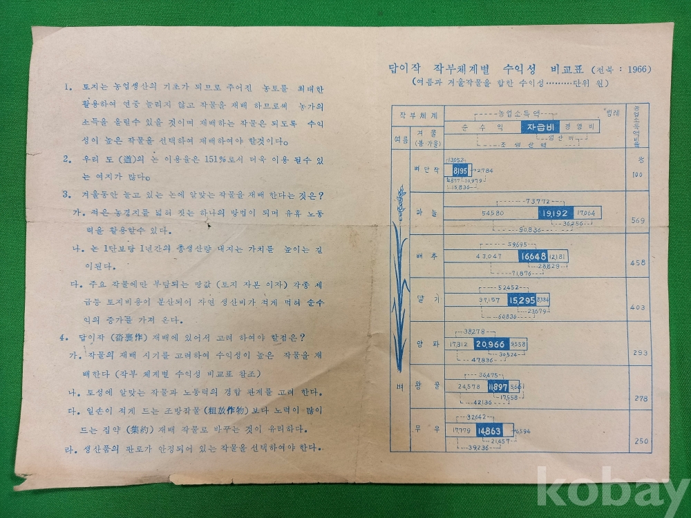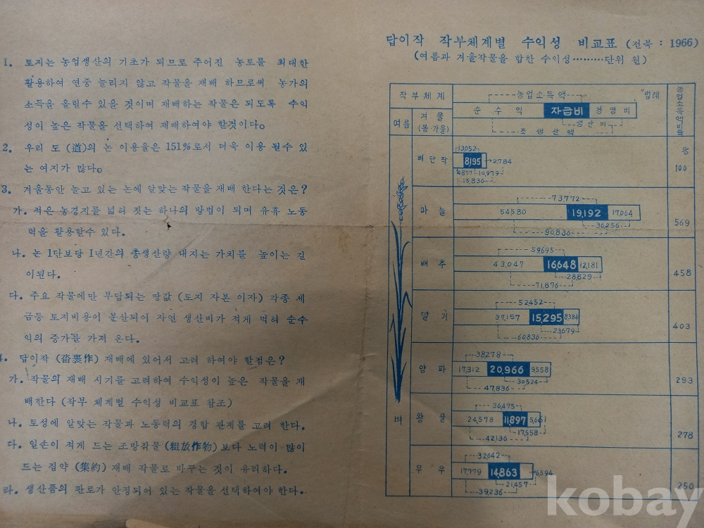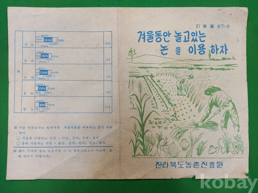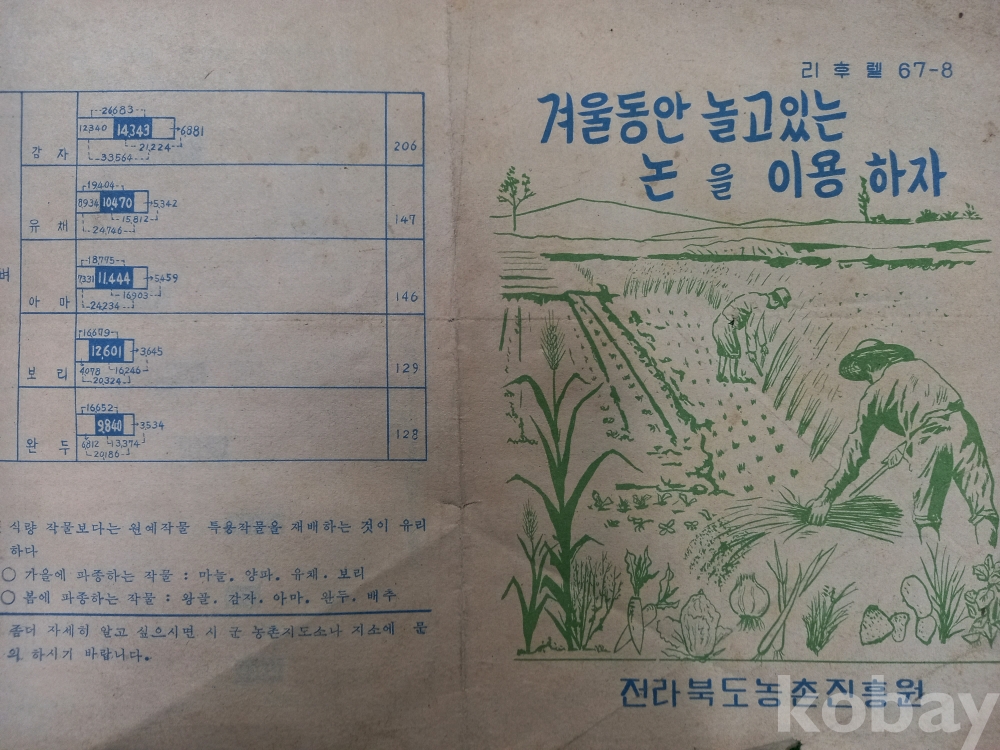 주요 내용은 겨울철 놀고 있는 논을 활용하여 다른 작물을 재배하는 방법을 안내하고 있습니다.