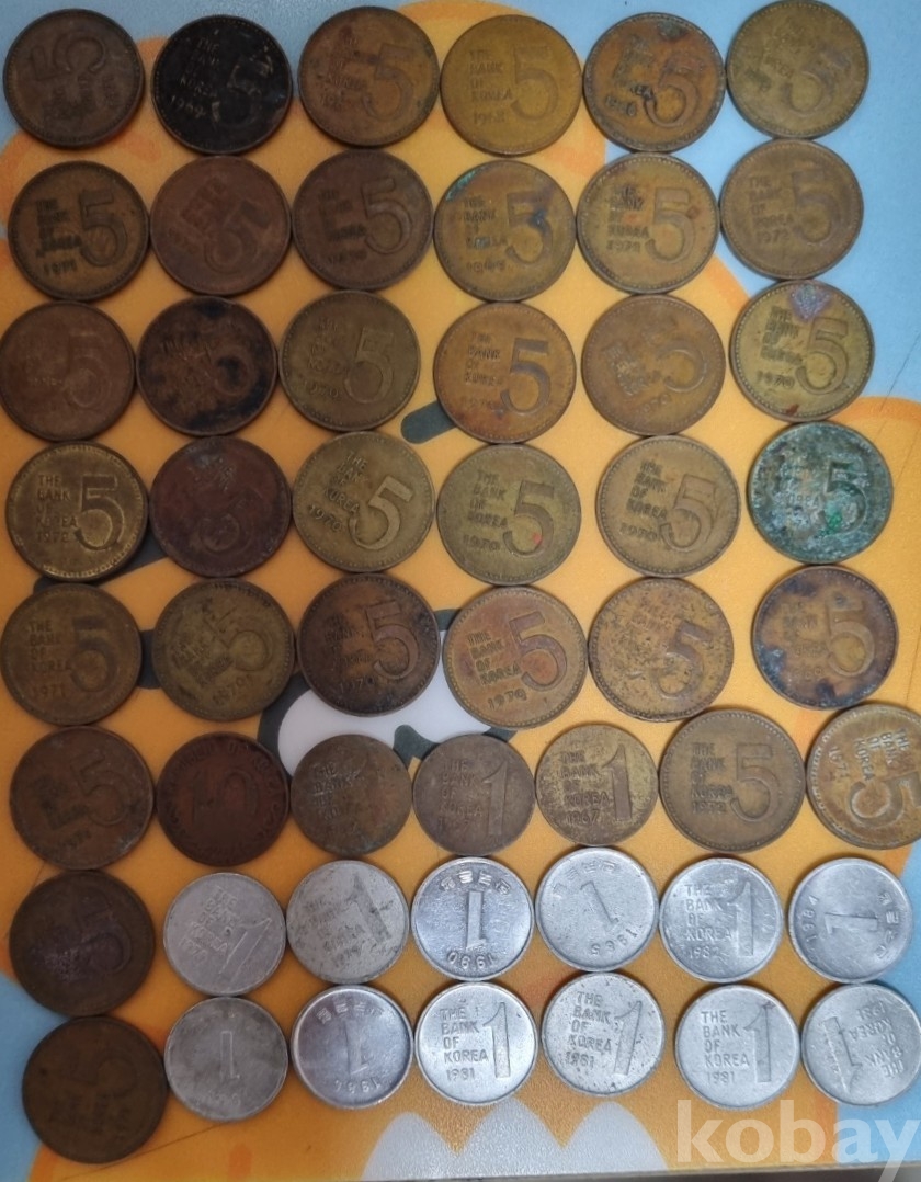 5원주화 35개, 1원동전 3개, 10환동전 1개, 1원납전 10개