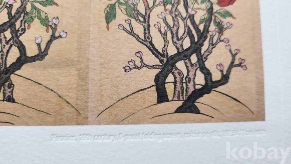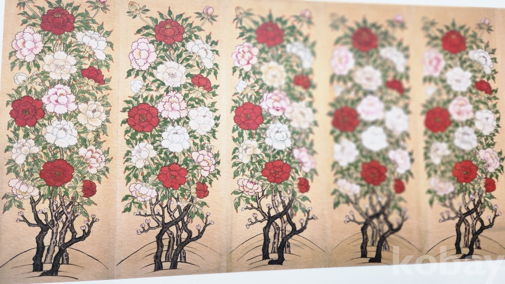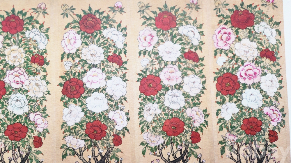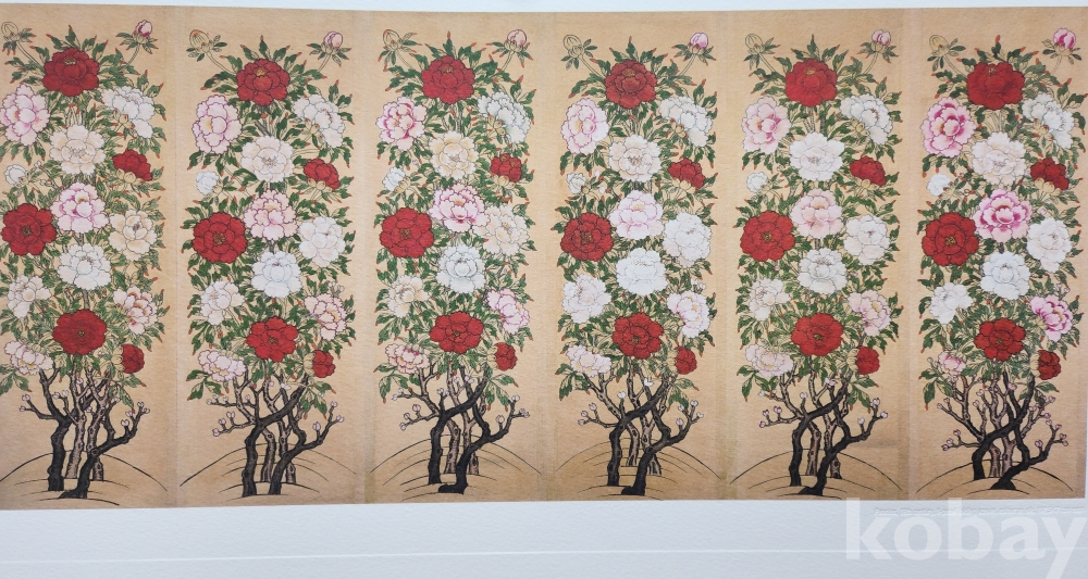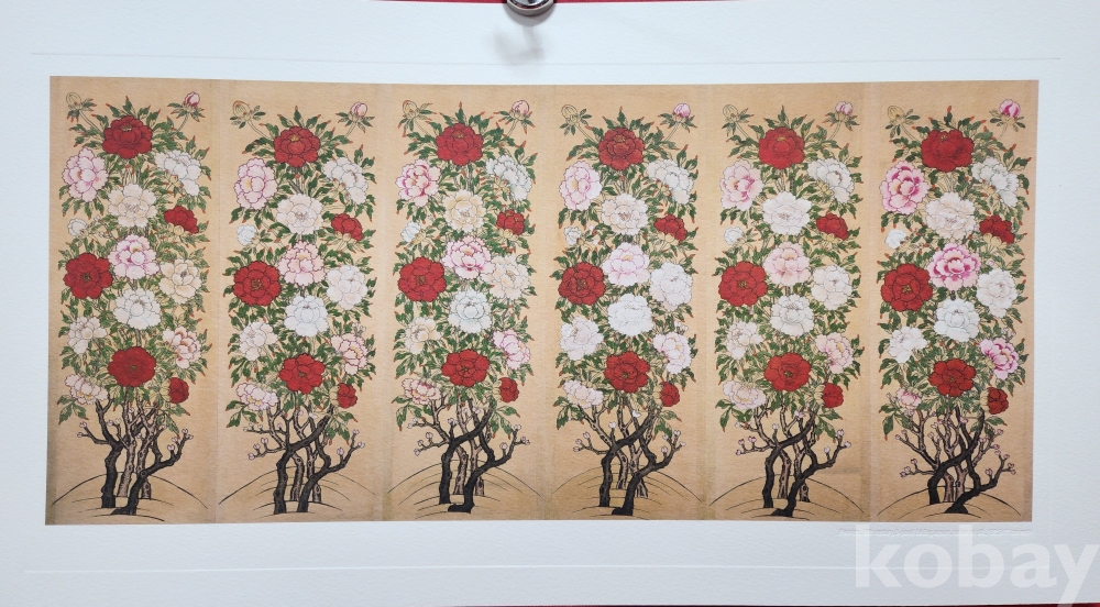 한국의 채색화 모란도(牡丹圖) 압인(壓印)판화입니다,