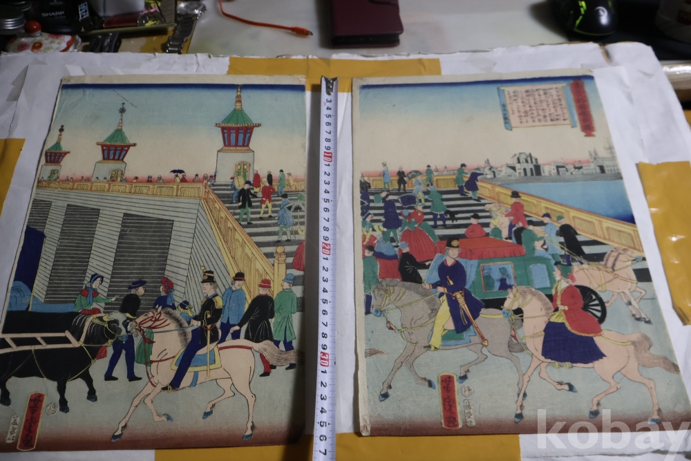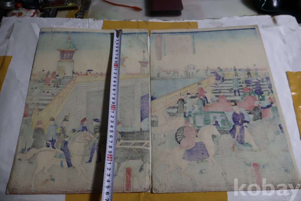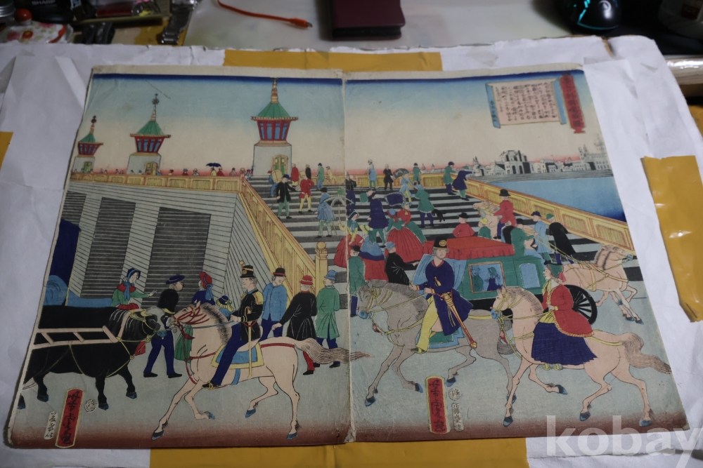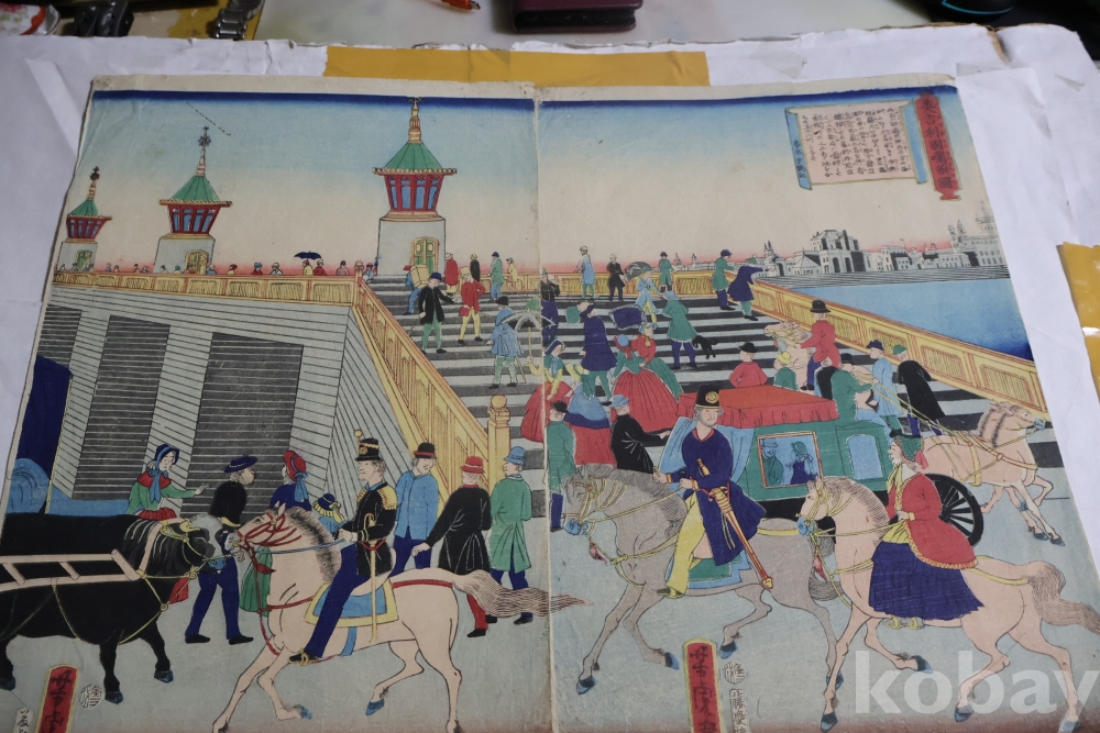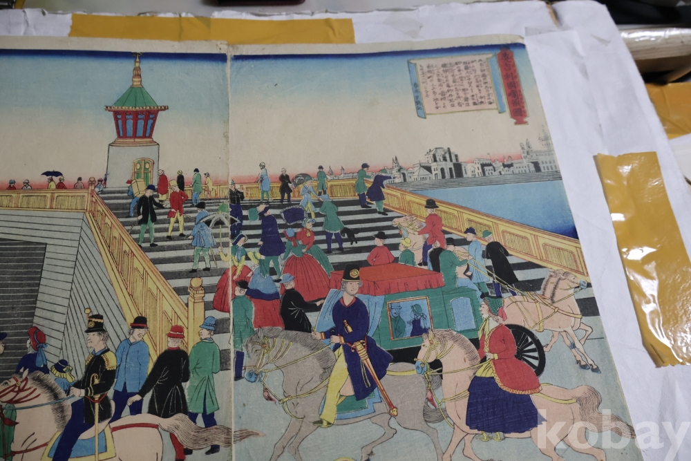 서양인을 주제로 한 귀한 목판화 원본 요시토라의 명작 임니다 19세기 명화 임니다 The artist Utagawa Yoshitora, active between 1850 and 1880