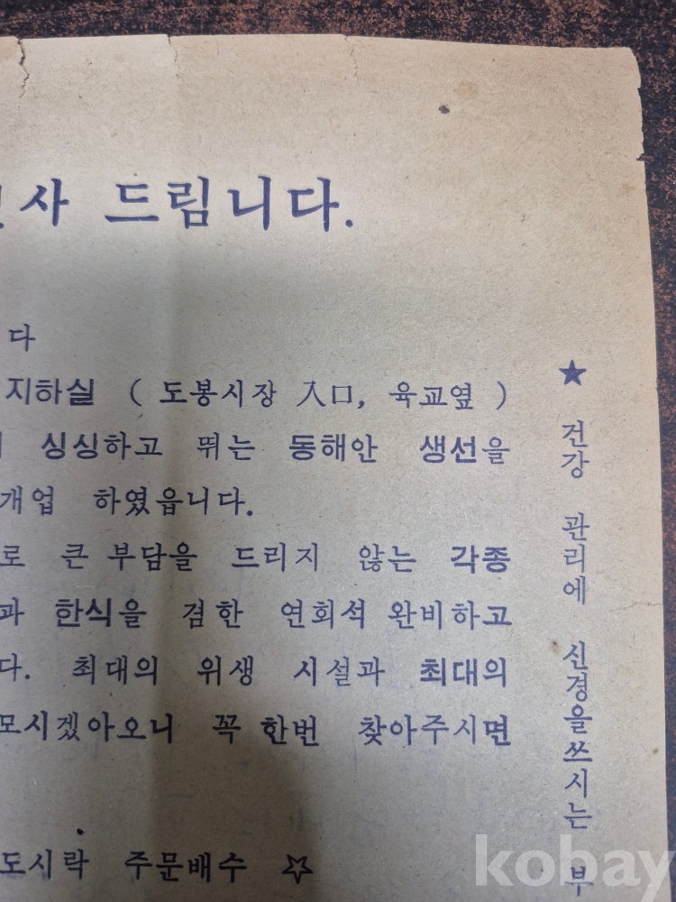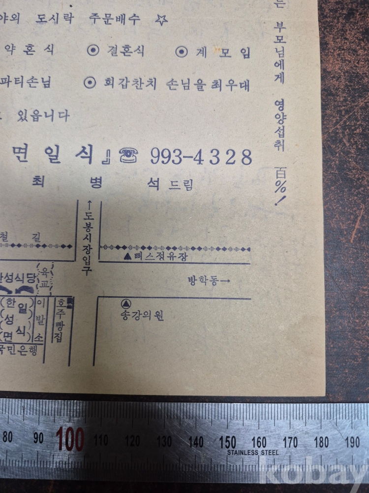 1980년대 전단지 찌라시 광고지 개업인사 도봉동 국민은행 지점 지하실 위치 한성면일식 개업기념 광과지 18*26