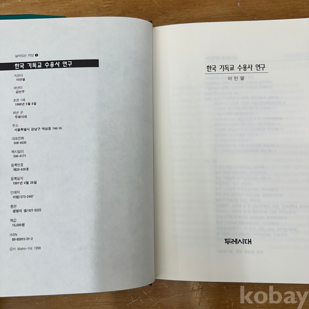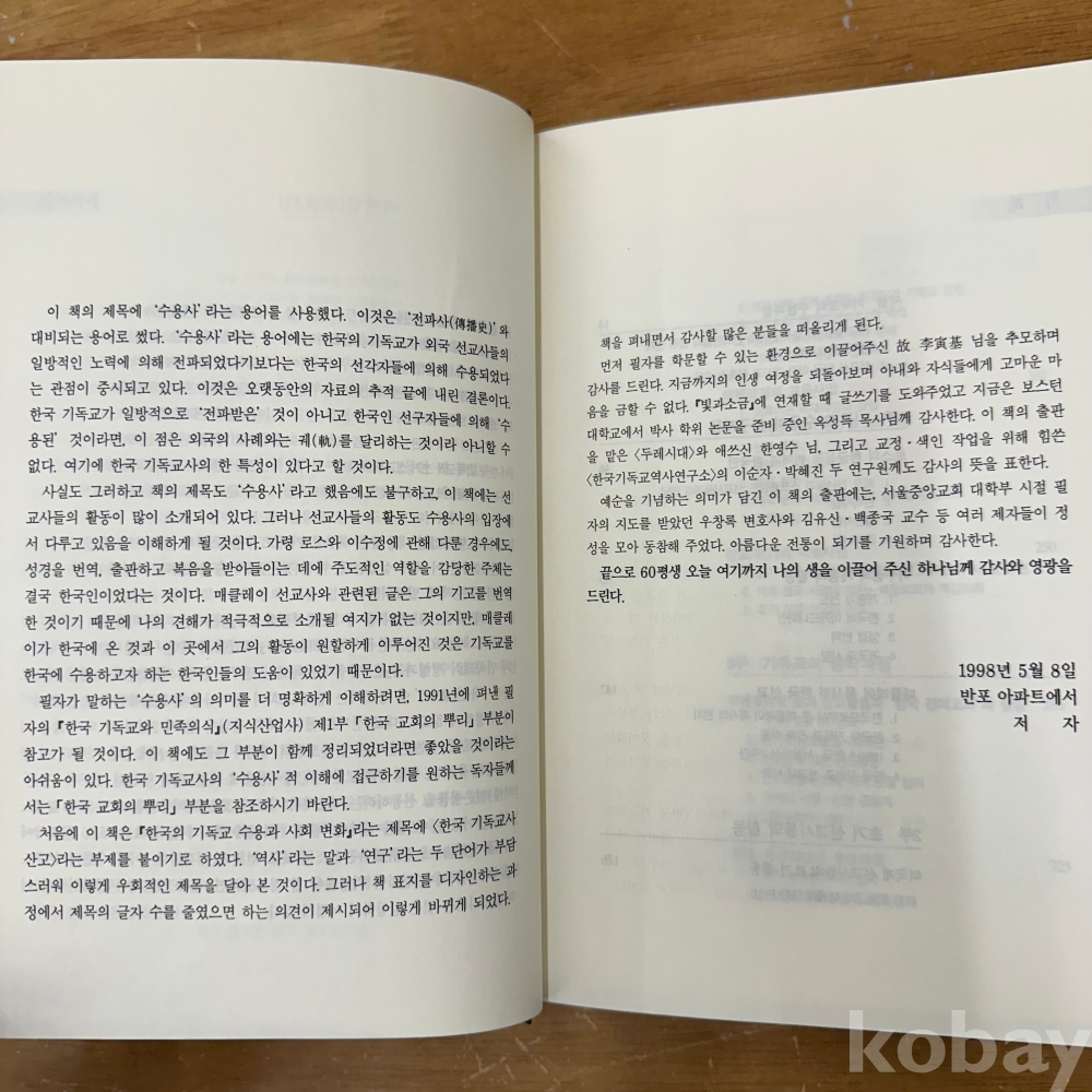 [한국근대사, 기독교, 아펜젤러, 선교사, 이수정] 이만열, <한국 기독교 수용사 연구>, 두레시대, 1998, p. 544, 상태 중급(사진참조)