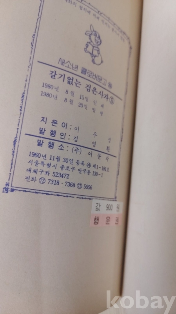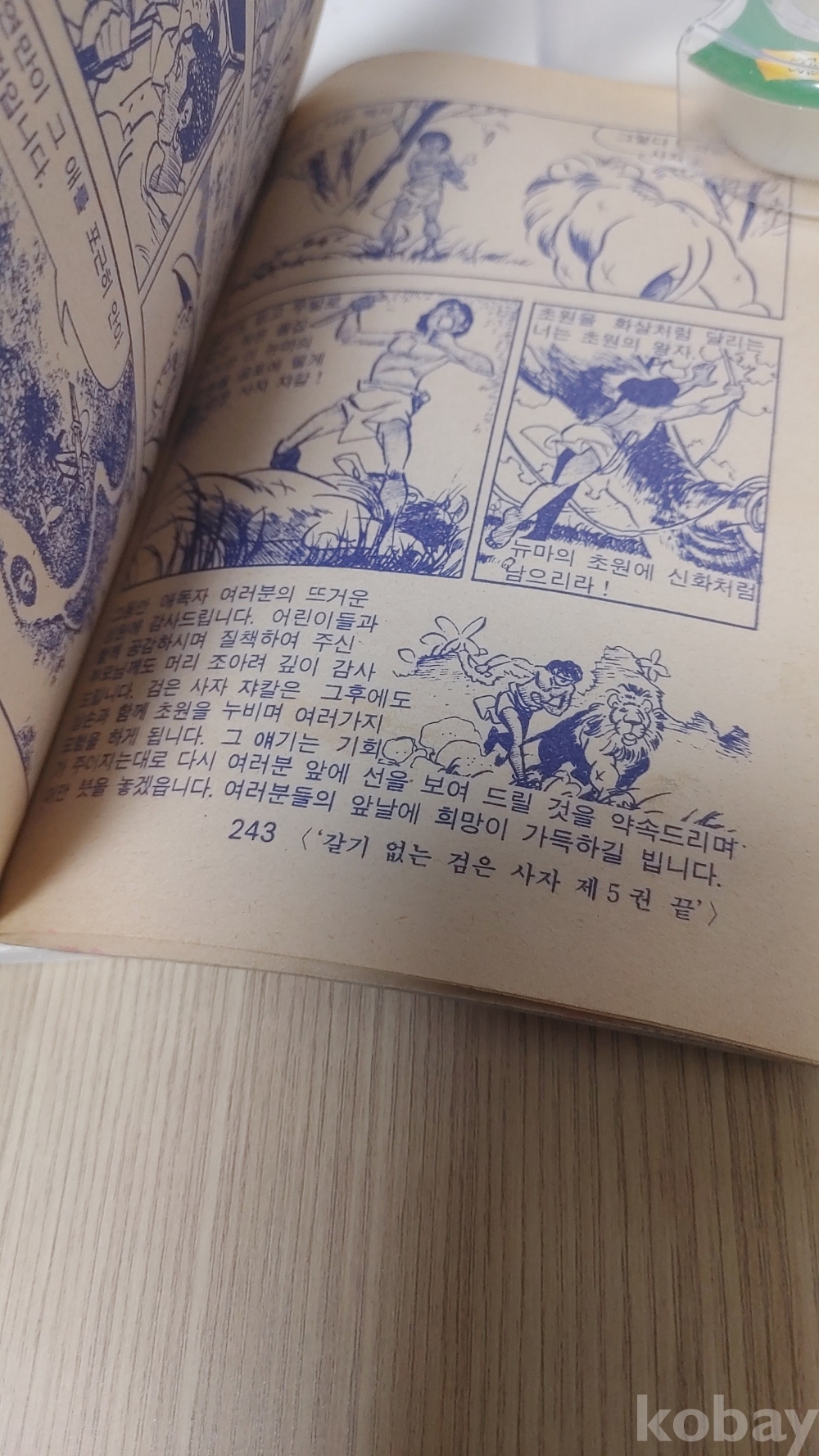 1980년 클로버문고 갈기없는 검은사자 5편 마지막편 만화책 입니다