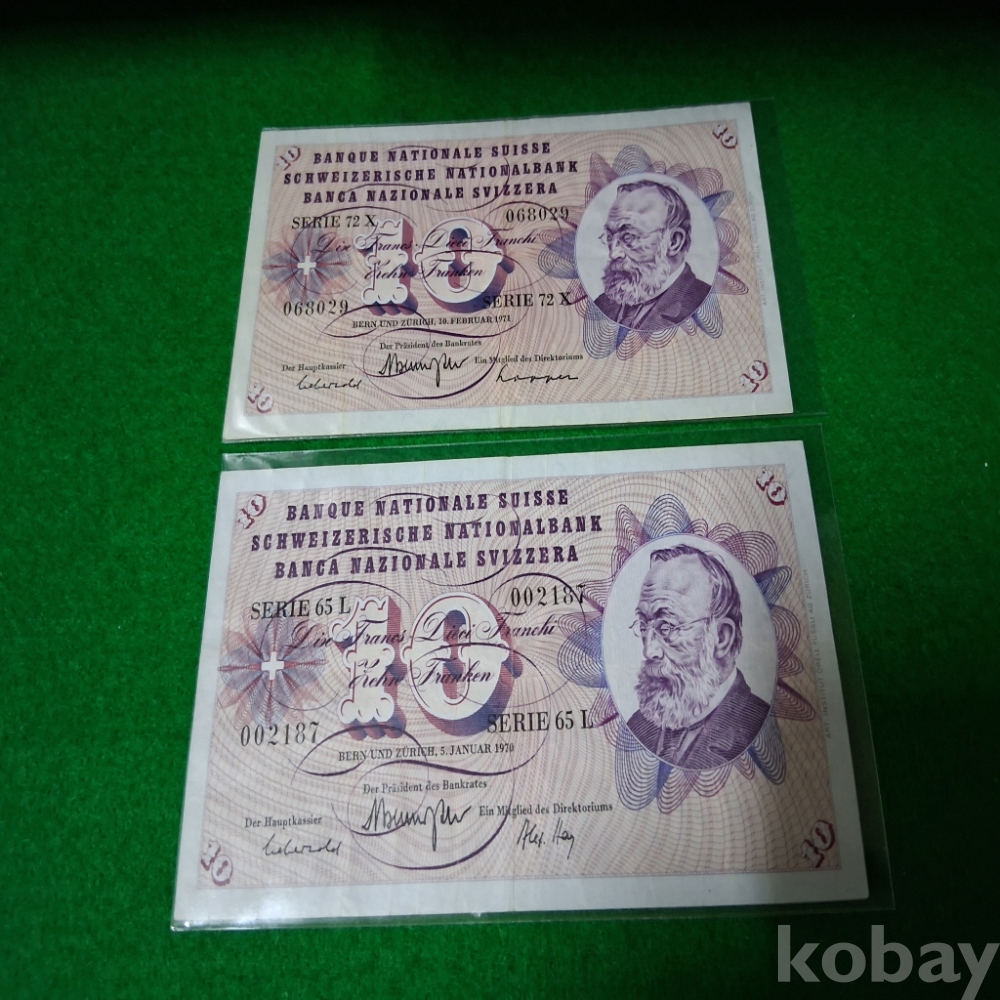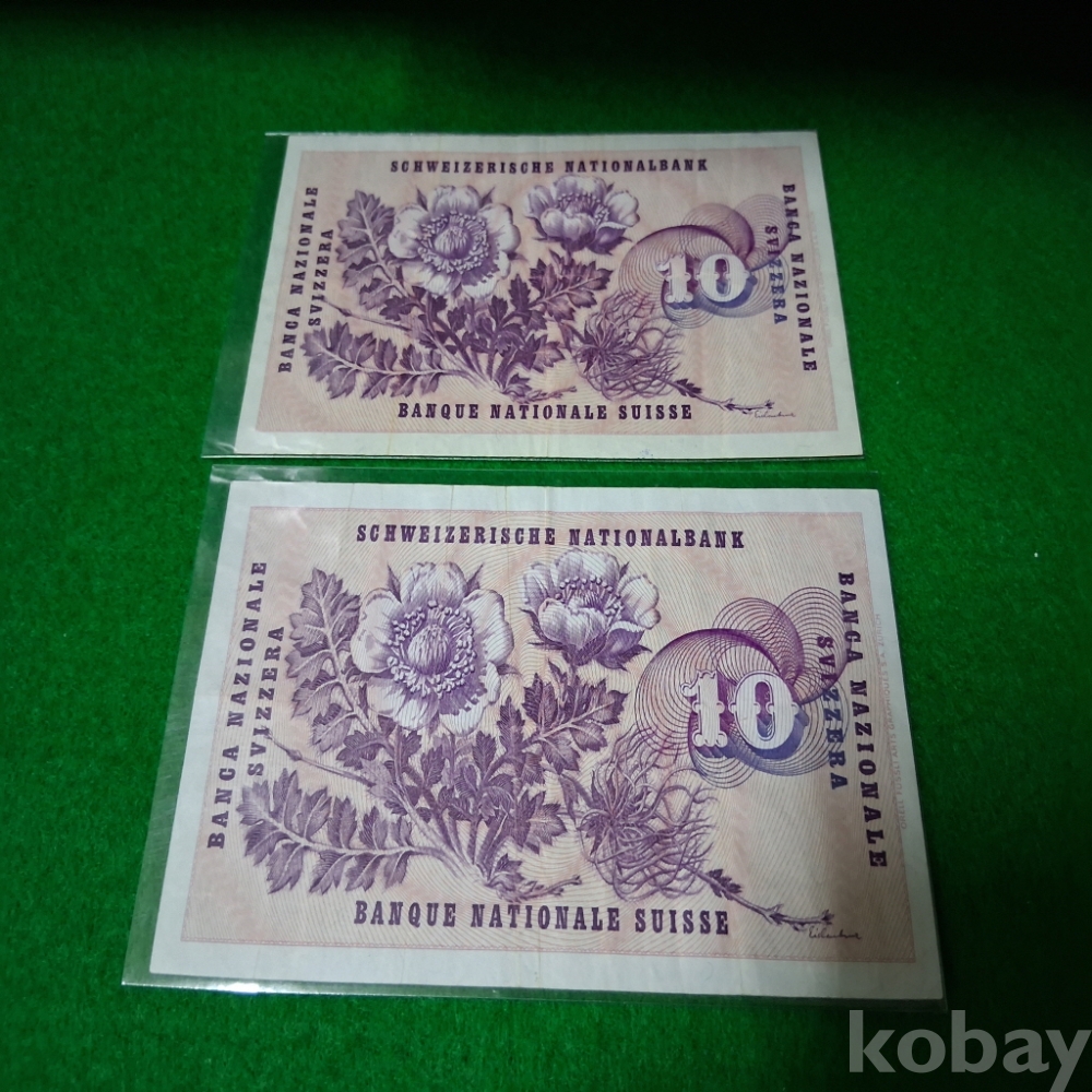 스위스 1970,71년 10프랑 2매 사용제