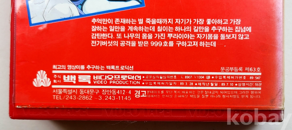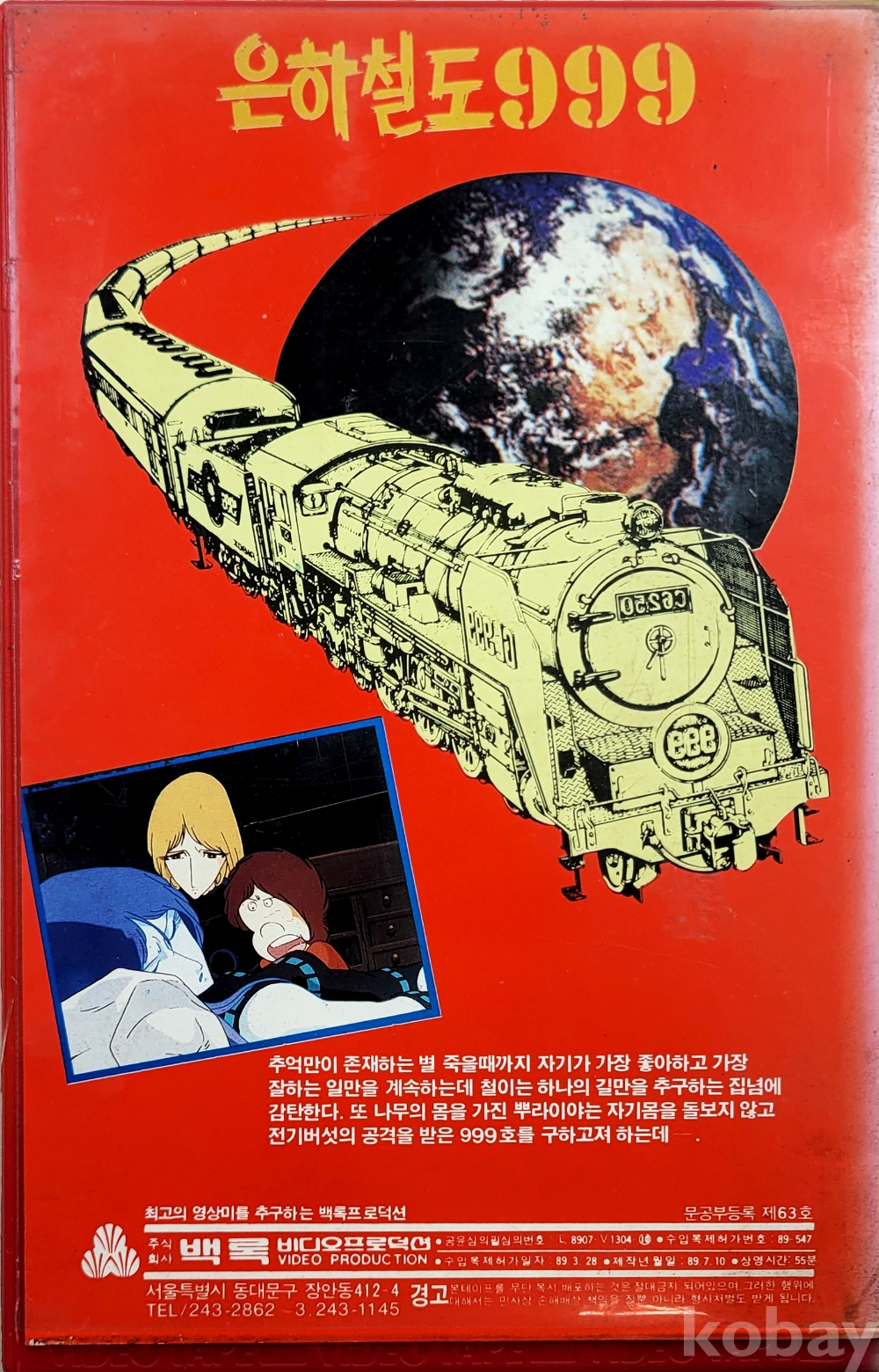 물 품 명 | 만화영화 / 은하철도 999 : 추억의 별 / 1989년 / 백록비디오프로덕션 |