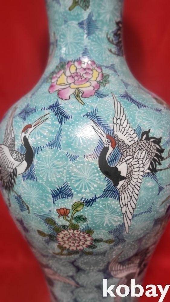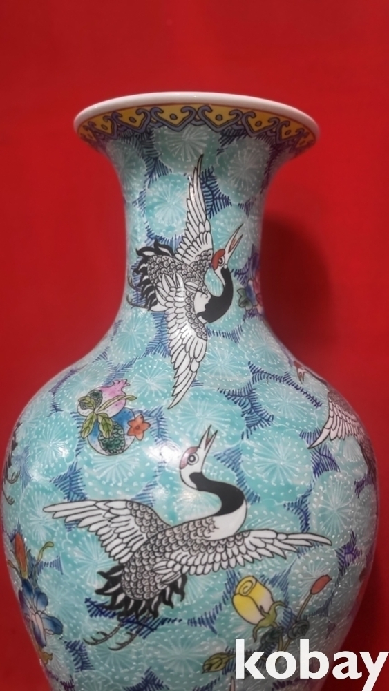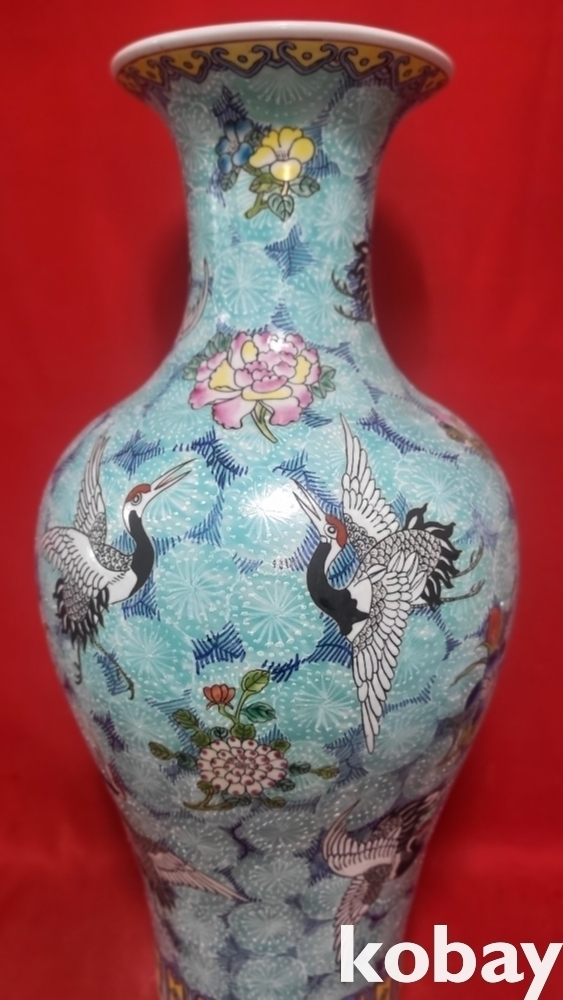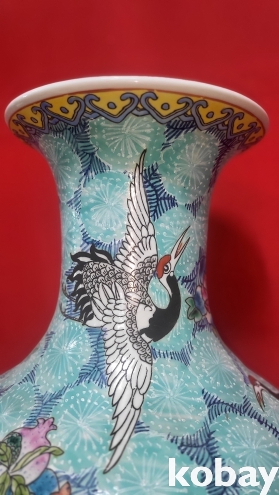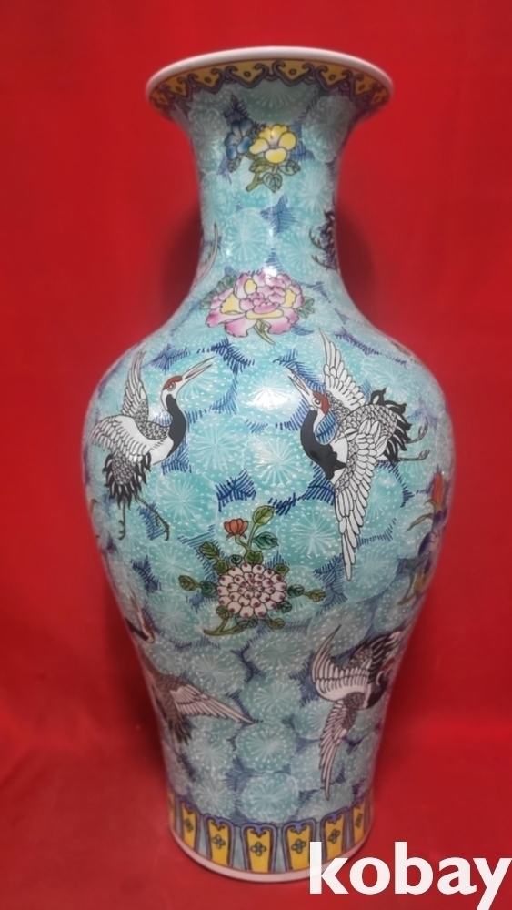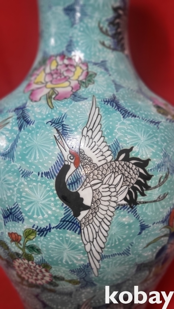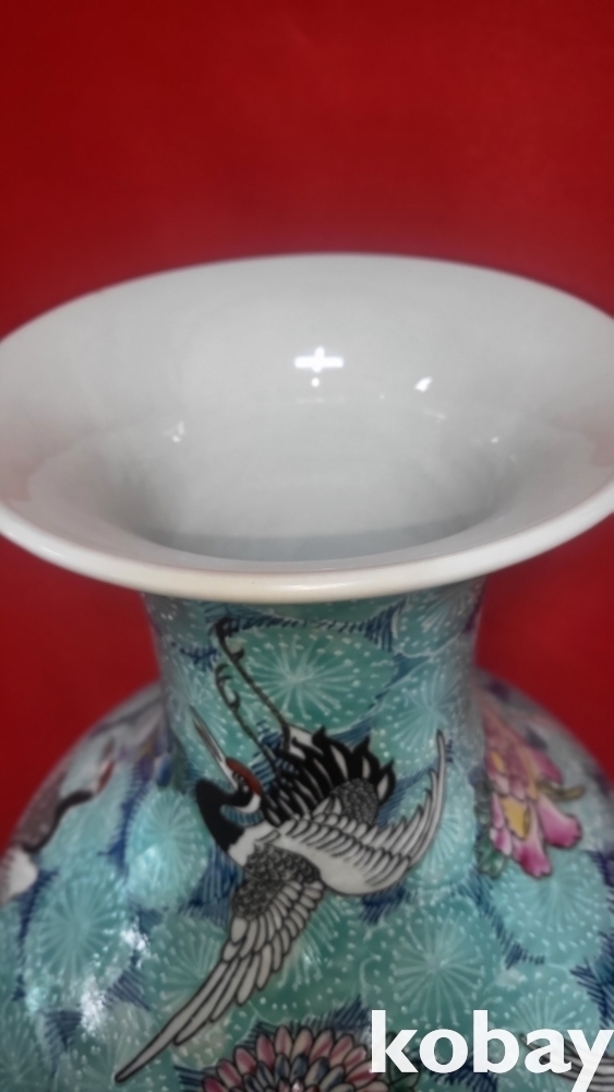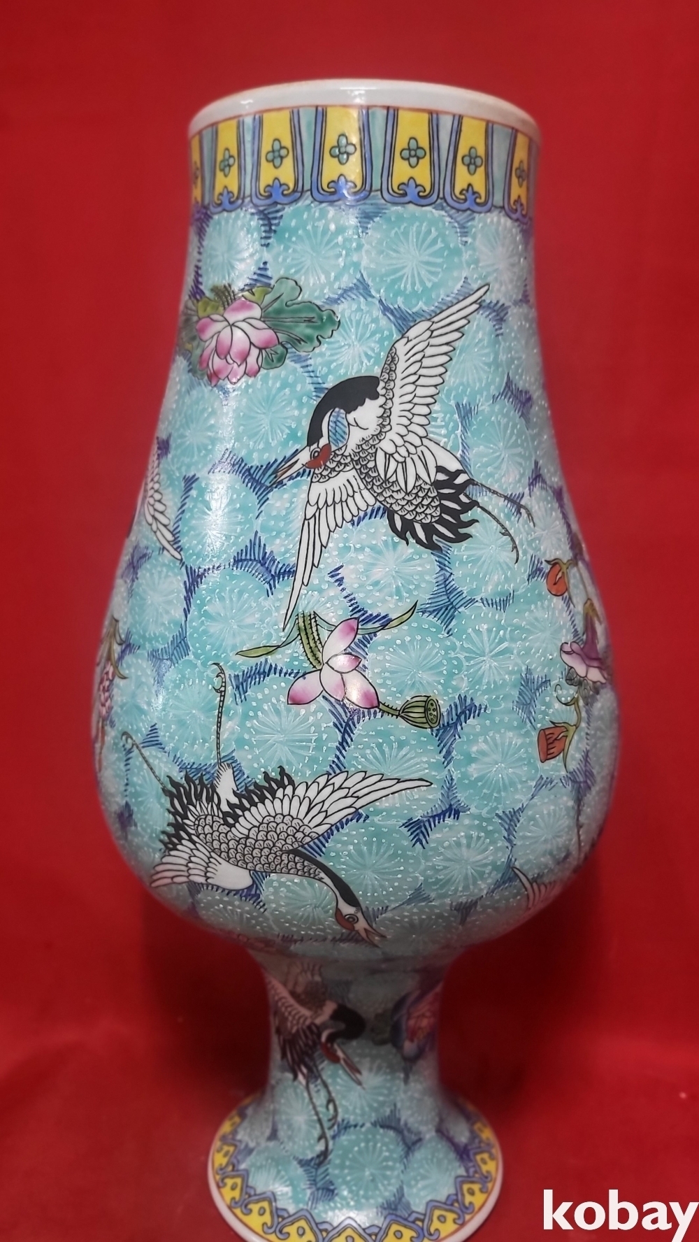 대청건륭 관지 보이는 분채(粉彩) 청천유(청지) 꽃과 학(花鶴)문양 대형급 항(樽)입니다,