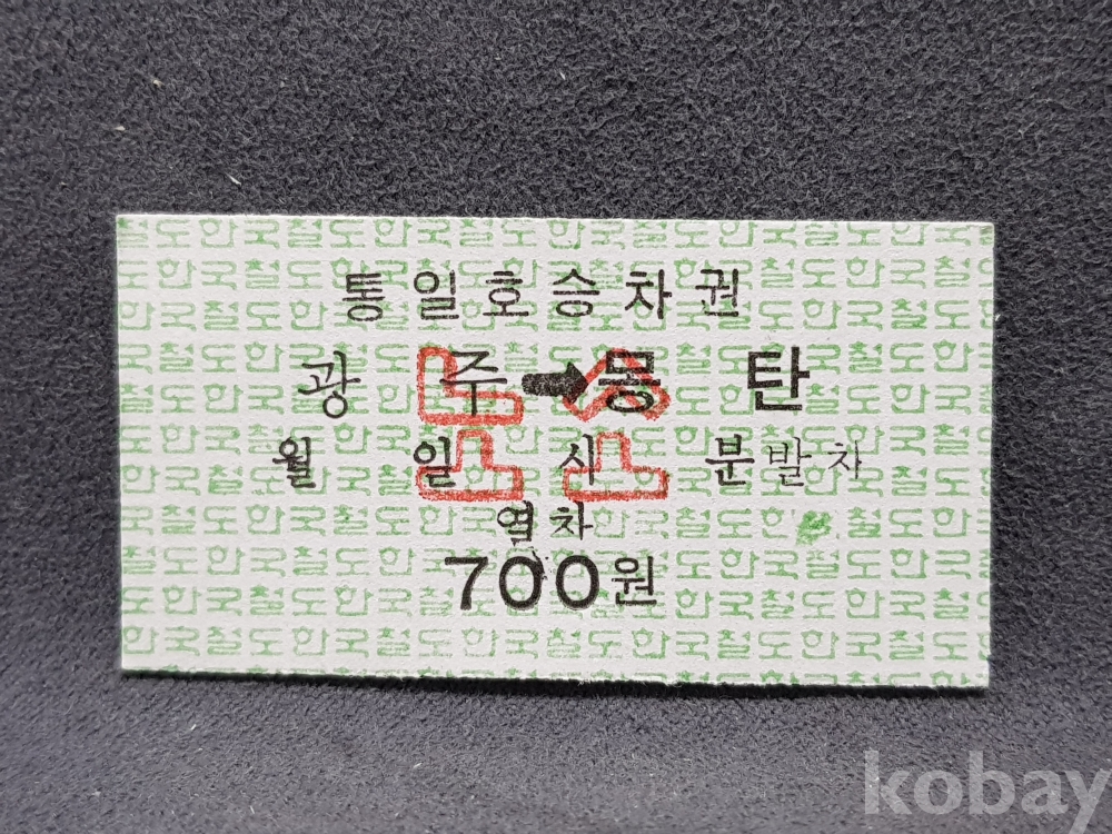 - 미사용 통일호 승차권 노소 " 광주 ▶ 몽탄 " 700원