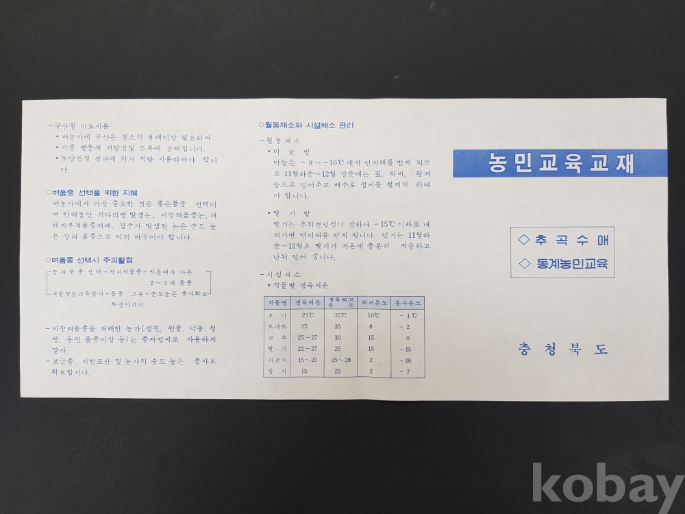 **** 농민교육교재/추곡수매,동게농민교육/충청북도