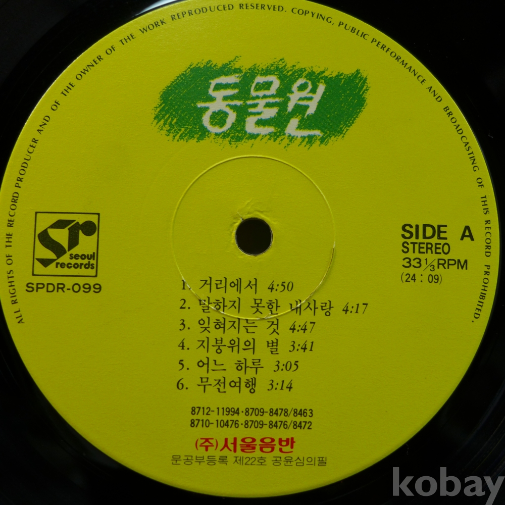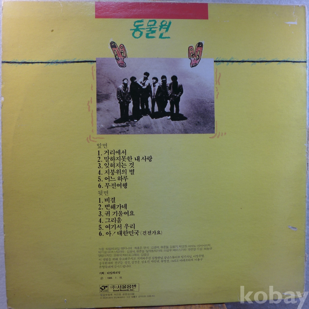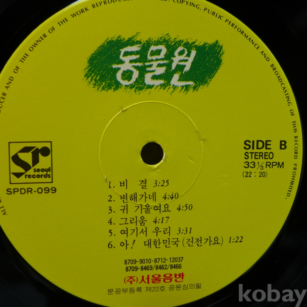 (귀한)LP음반: 동물원 1집 "거리에서","변해가네"등 수록앨범