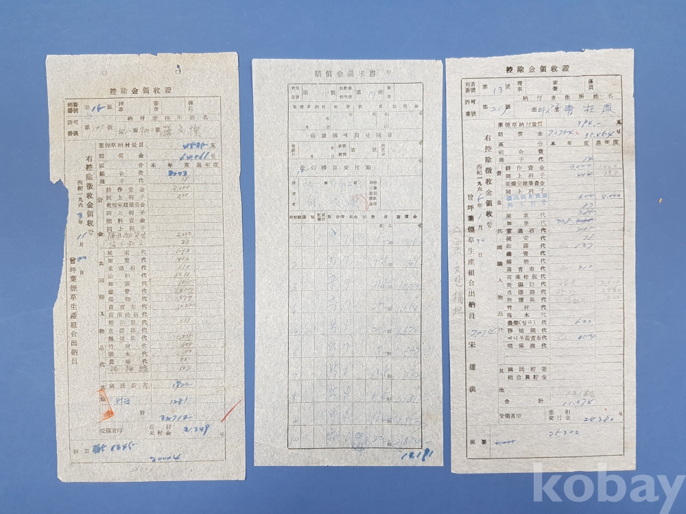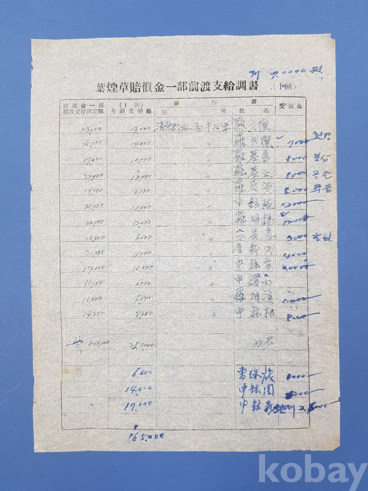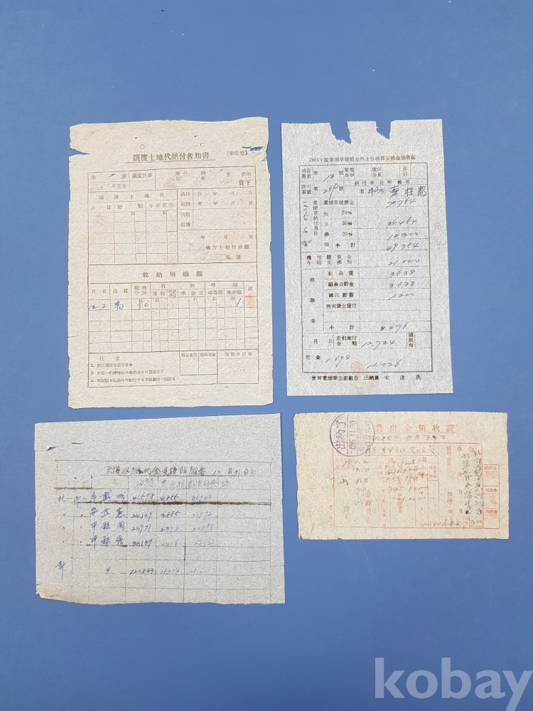 엽연초배상금외상분정산지불금영수증,대출금영수증,미불수납대금지불명세서