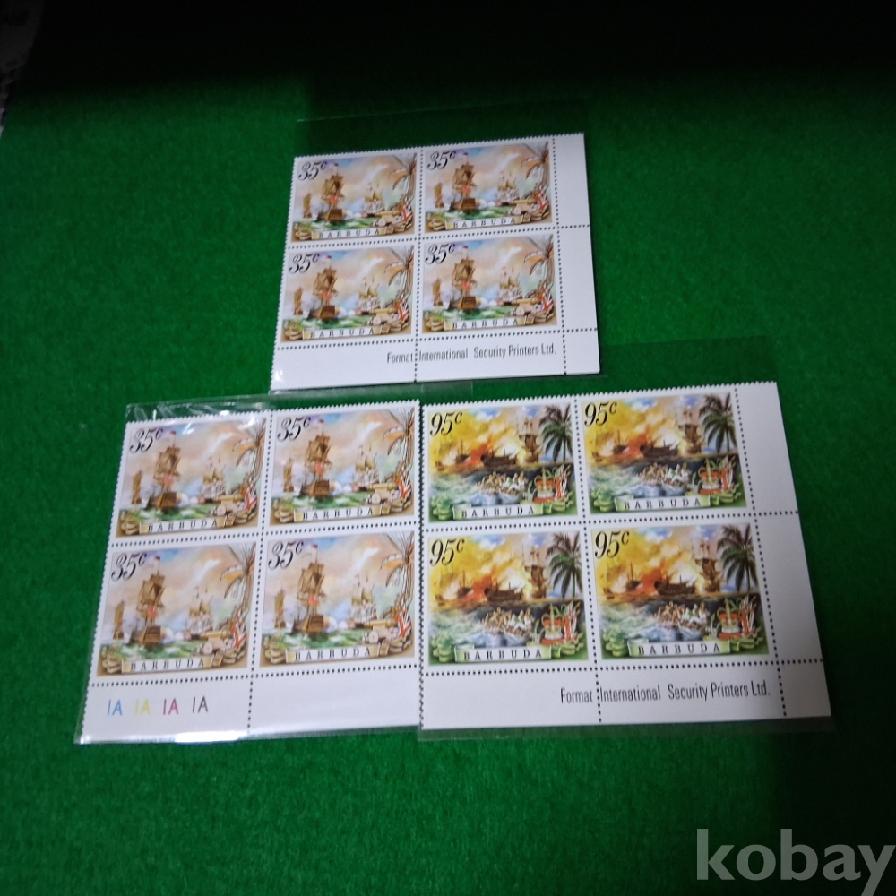 바부다 해전선박 우표블럭3매 미사용