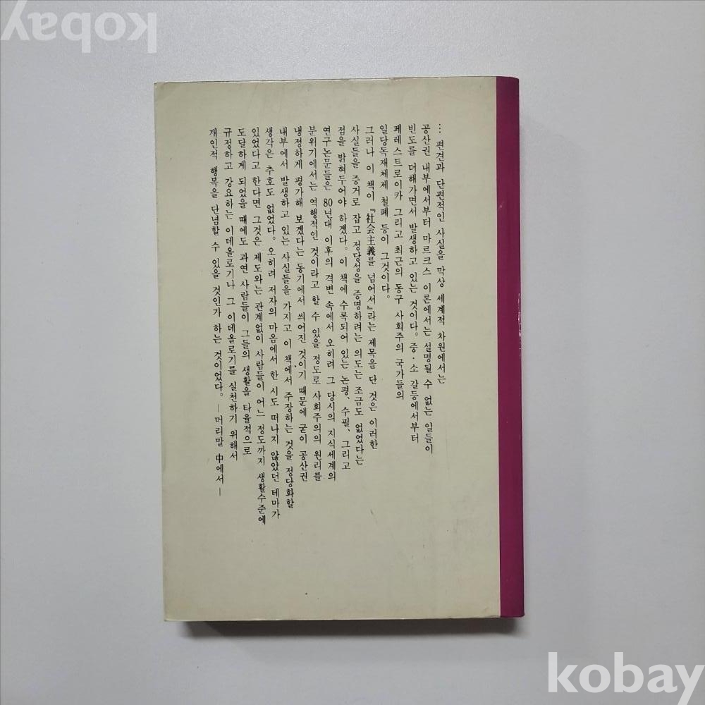 [천원경매] 사회주의를 넘어서 (황성모 사상평론집/ 인간사랑 90년) : 내지직인 중하급/서고zz04