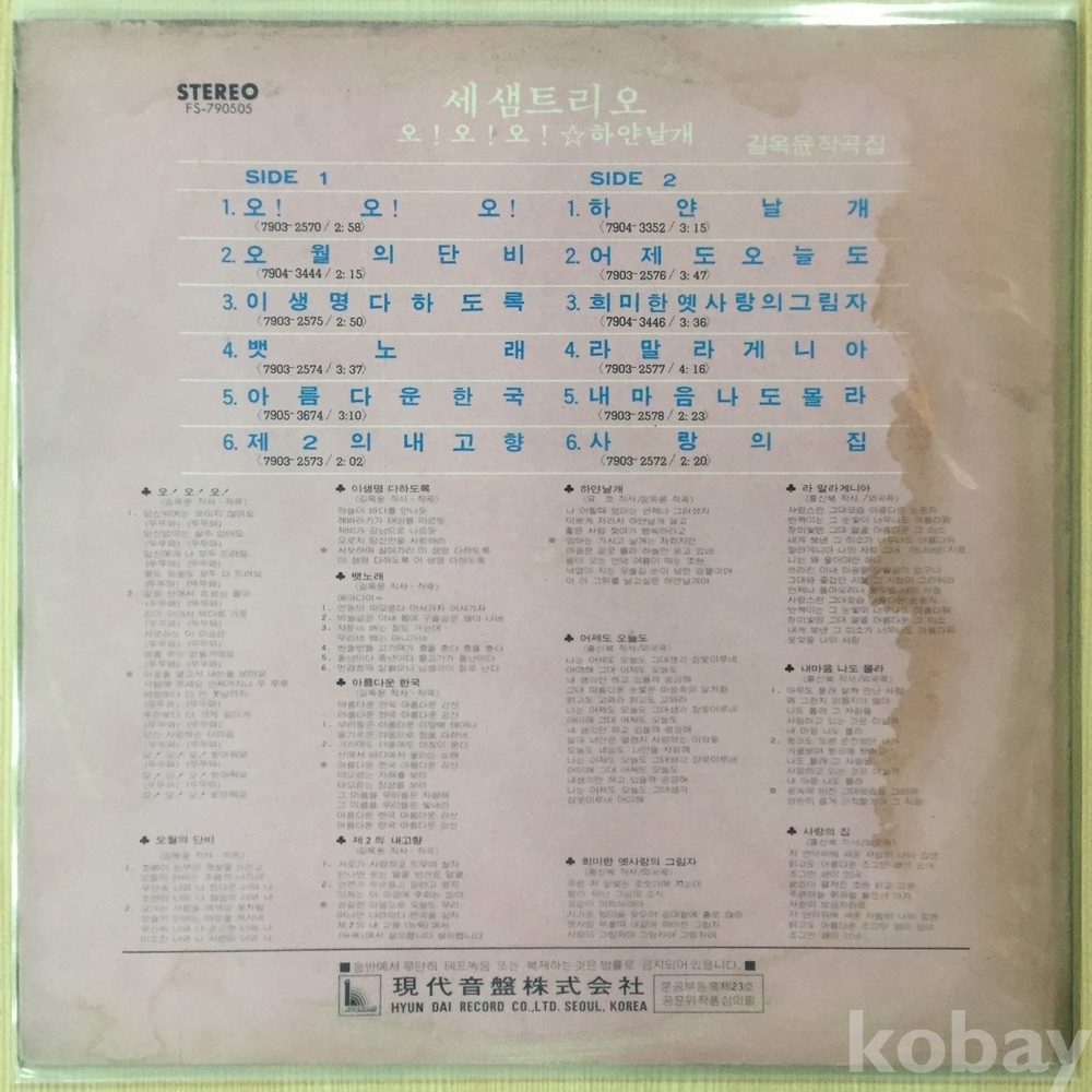 세샘트리오 2집 - 오!오!오!/하얀날개