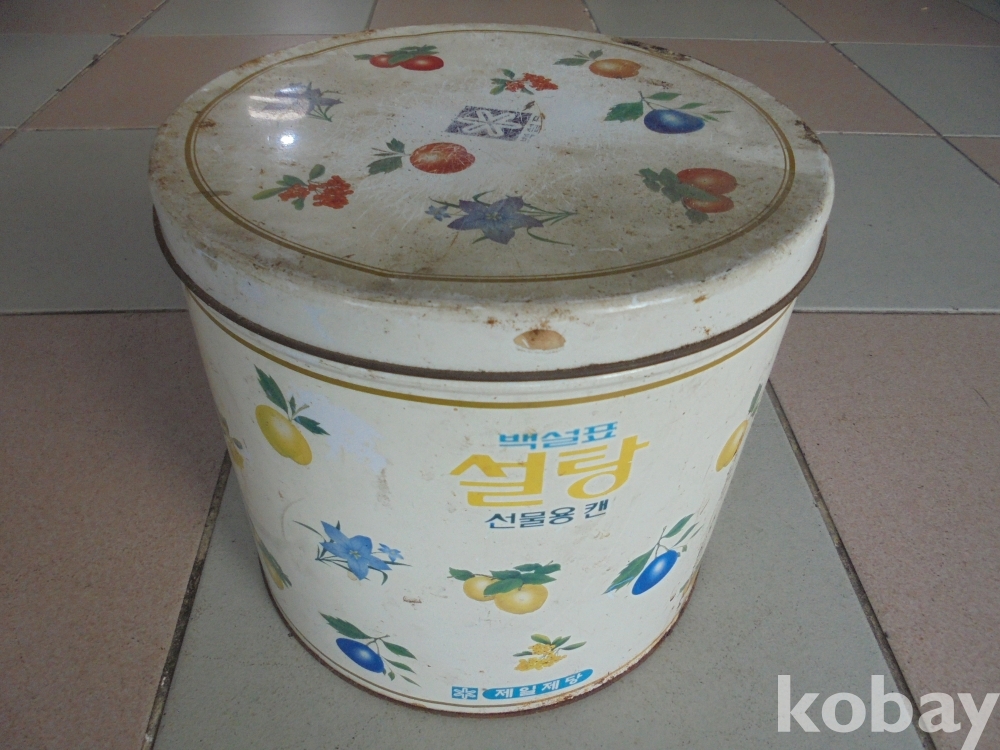 옛날 제일제당이 미풍과 설탕등을 만들어 경쟁업체와 대결한 추억의 오래된 제일제당이 만든 백설표 양철 큰설탕통