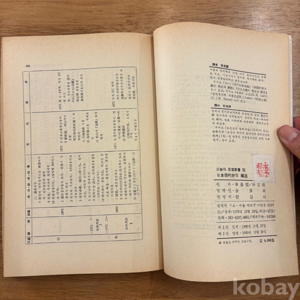 [일본현대사] 차기벽 외, <일본 현대사의 구조>, 한길사, 1980, p. 438, 상태 중하급(밑줄, 사진참조)