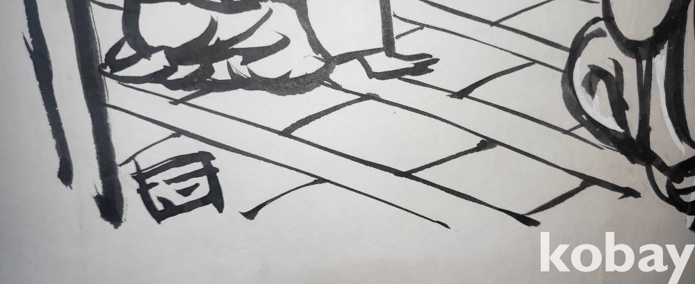 물과 먹으로 만 직접 그려진 수묵화 삽화입니다,