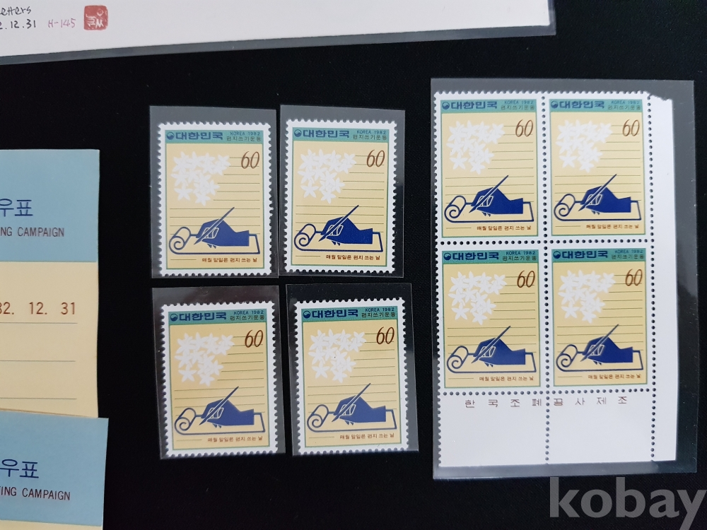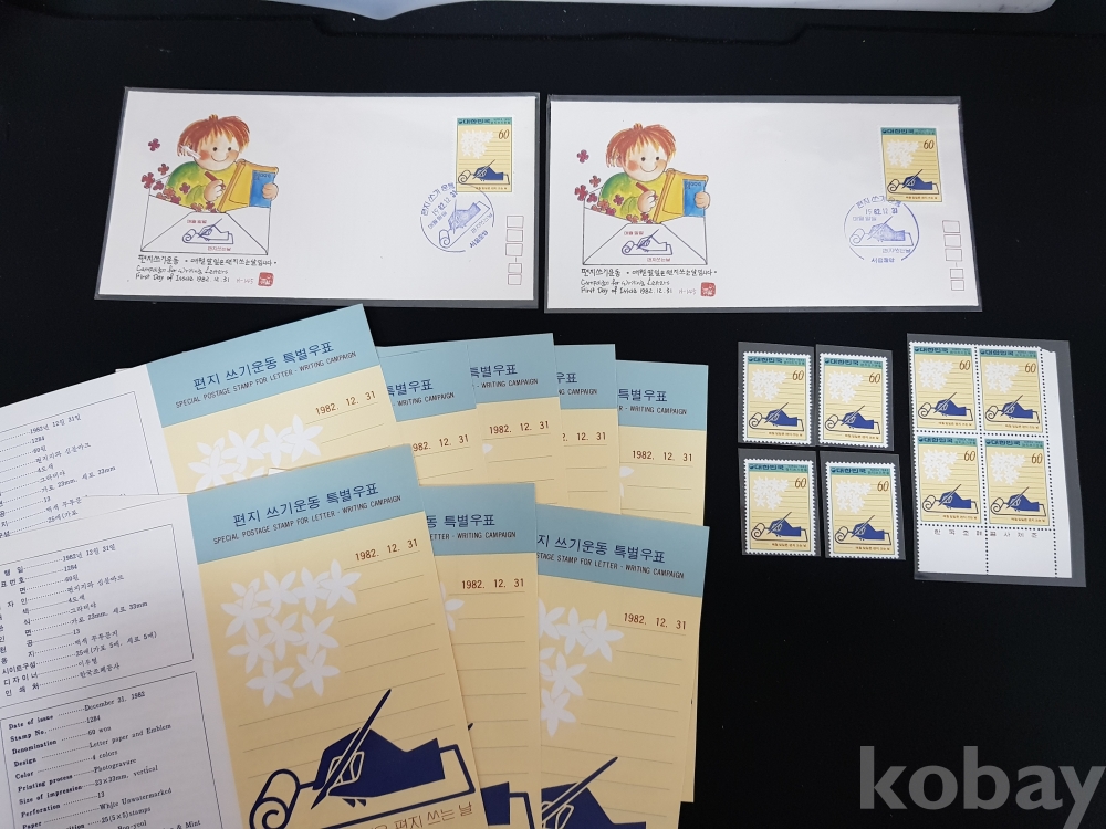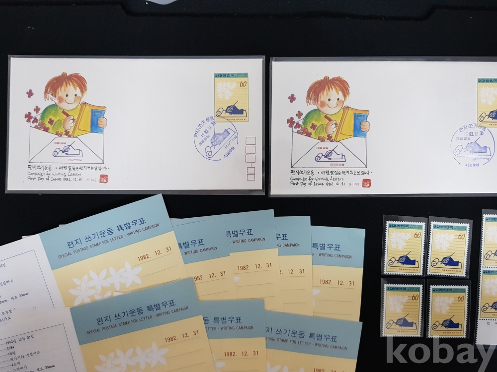- 1982년 편지 쓰기운동 안내카드, 초일봉피, 명판 등 모음