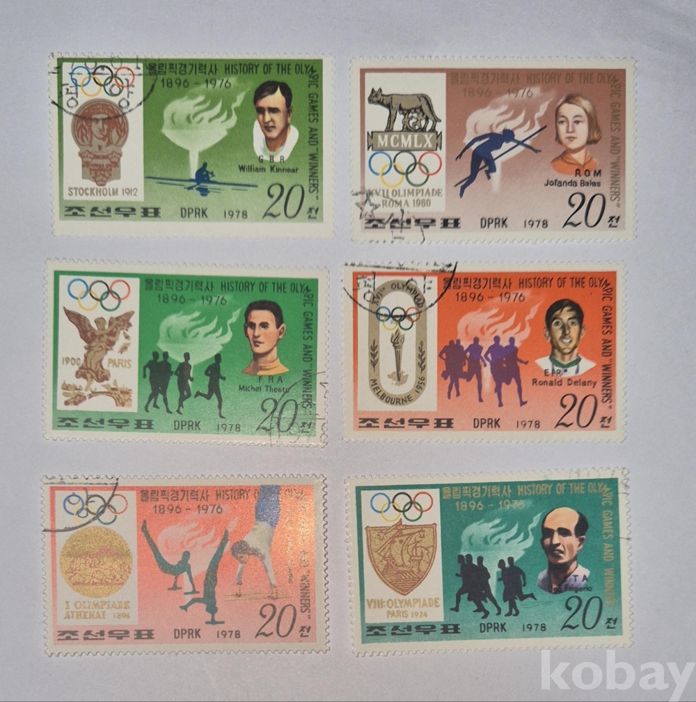 1978년 발행된 '1896-1976 올림픽경기력사 기념우표' 조선우표 6종입니다.