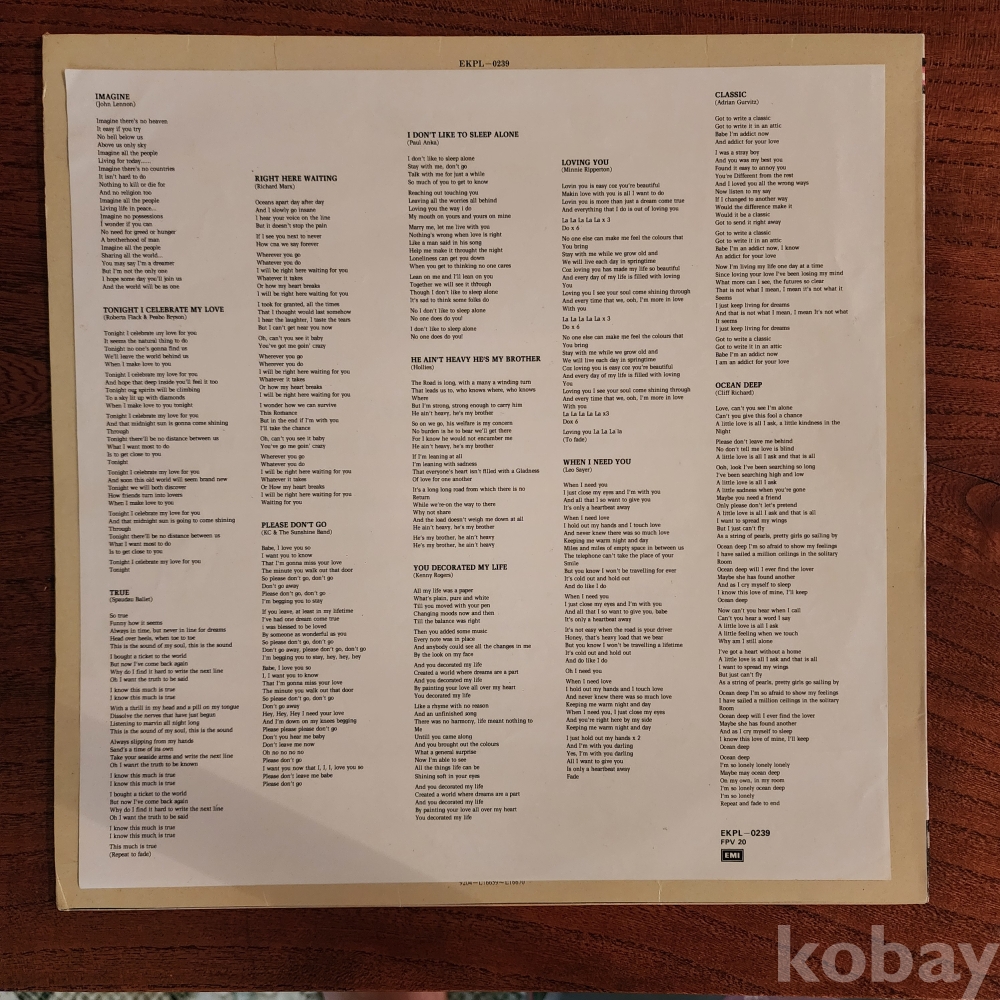 팝 모음집, 존레논/리챠드막스/로버타플랙&피보 브라이슨/레오세이어/홀리스