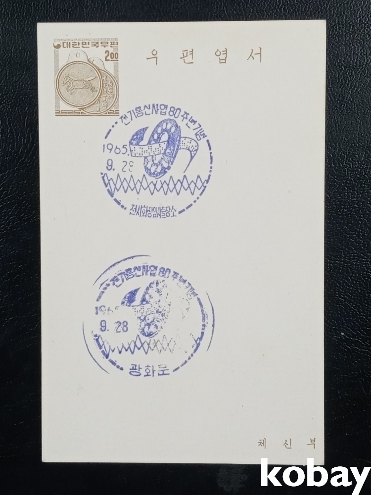 (추천) 60년대 귀한 기념일 소인 우편 엽서(마패)