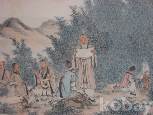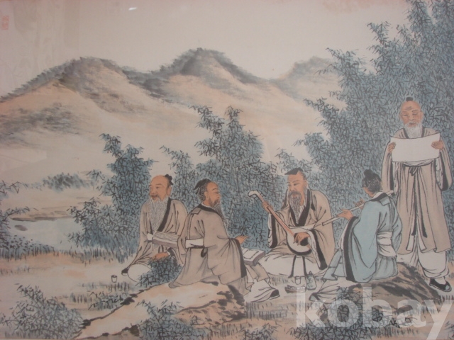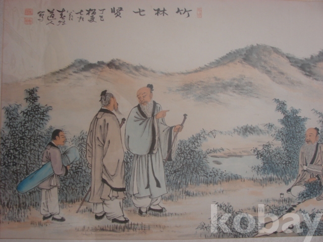 춘초 지성채(春草 池盛彩 1899 - 1980)의 대형 죽림칠현도(47×122)입니다.