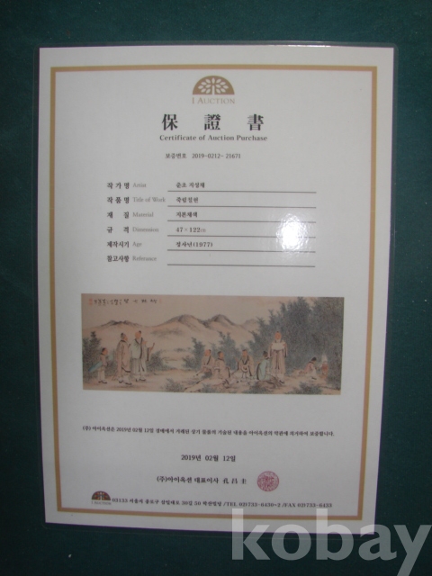 # I - 옥션 작품보증서 있음. 액자는 낡아 해체하였습니다. 작품만 배송합니다.