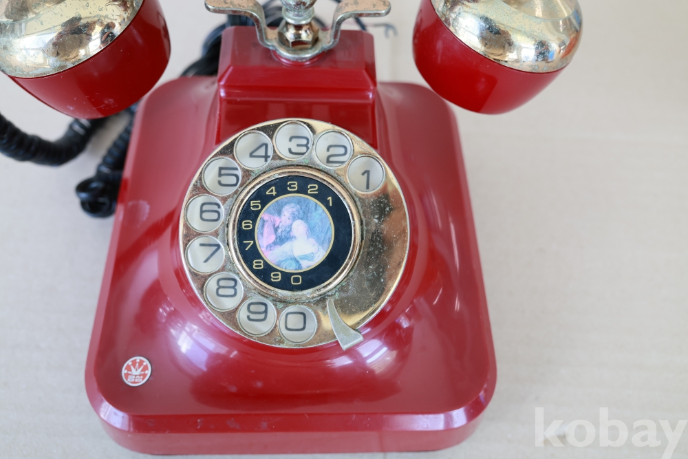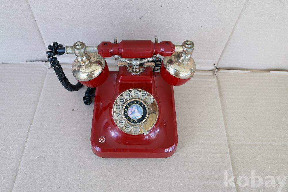 - 금성(금성사) 골드스타 다이얼 전화기 빈티지 안티크 스타일 빨간색