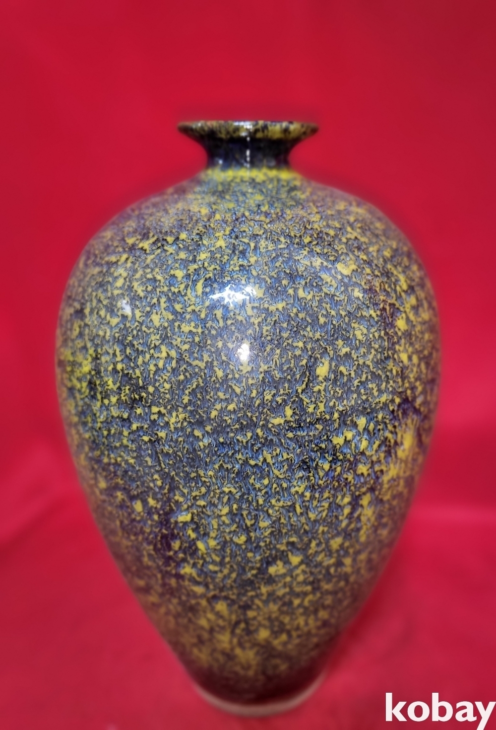 기물 전체에 다양한 요변이 시문된 큰 기물입니다,