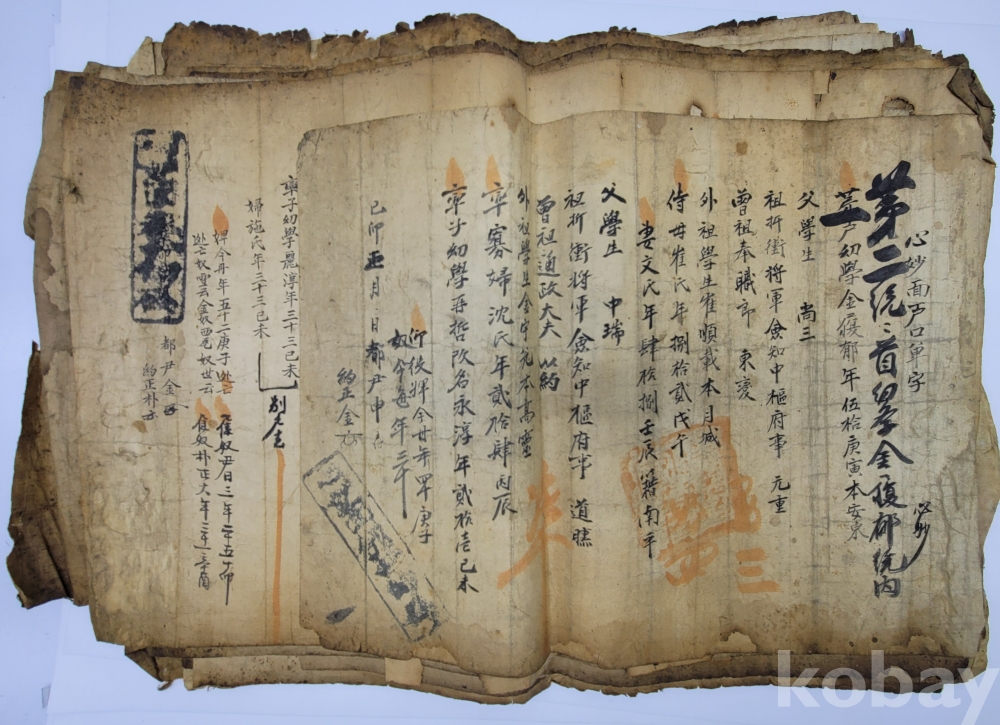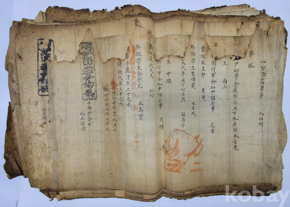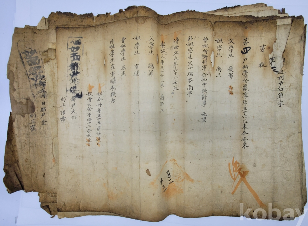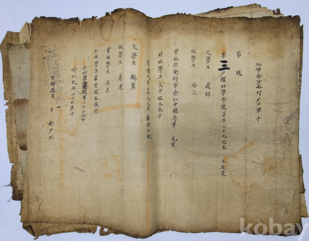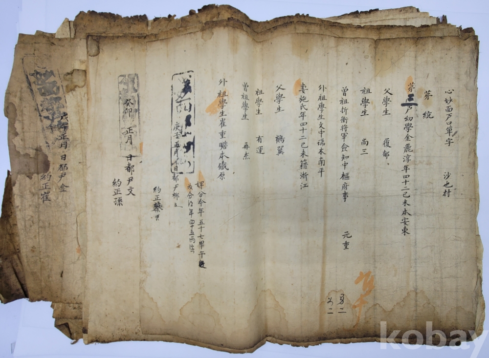 경남 합천 지역 호적단자.