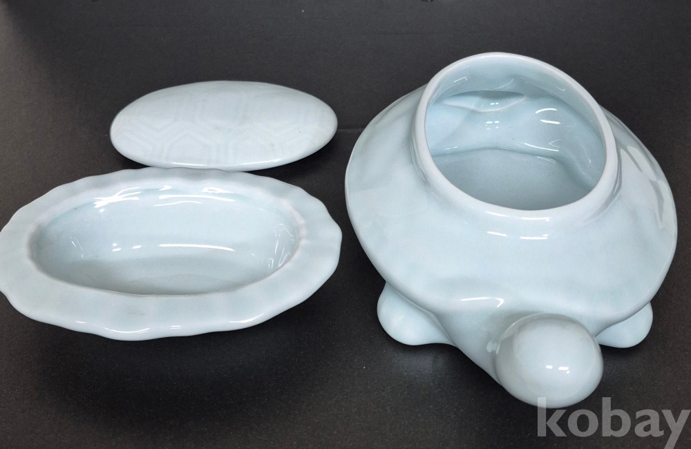 연한비색을 품고있는 백자도자기 입니다. 보관상태가 좋으며 무게감이있네요. 크기와함께 사진참고해주세요.