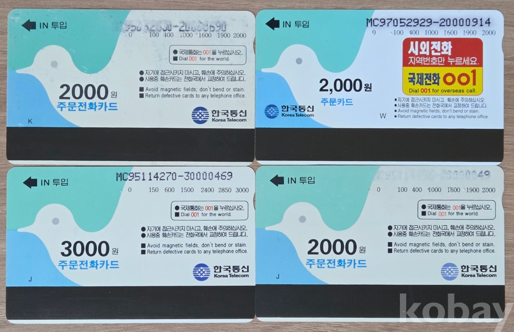 8-90년대 제작된 공중전화카드 4종일괄입니다 (사용제)