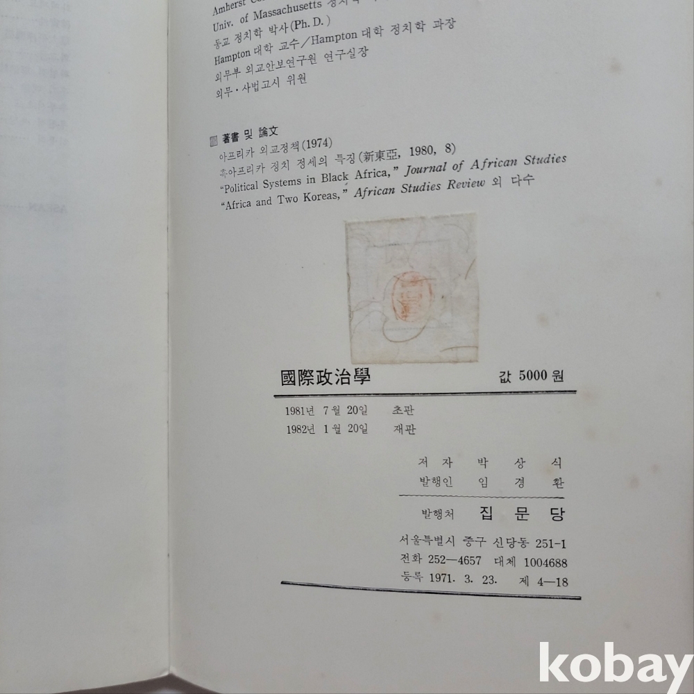 [천원경매] 1982년 집문당 발행 국제 정치학 도서