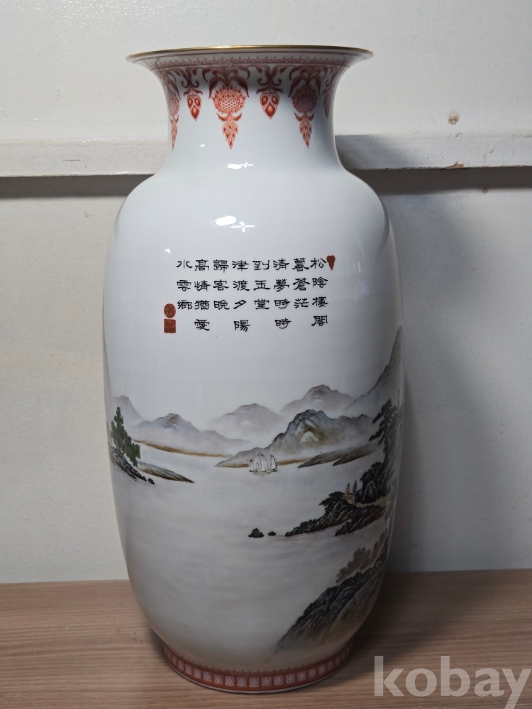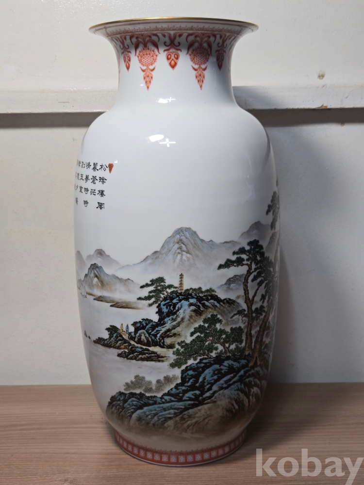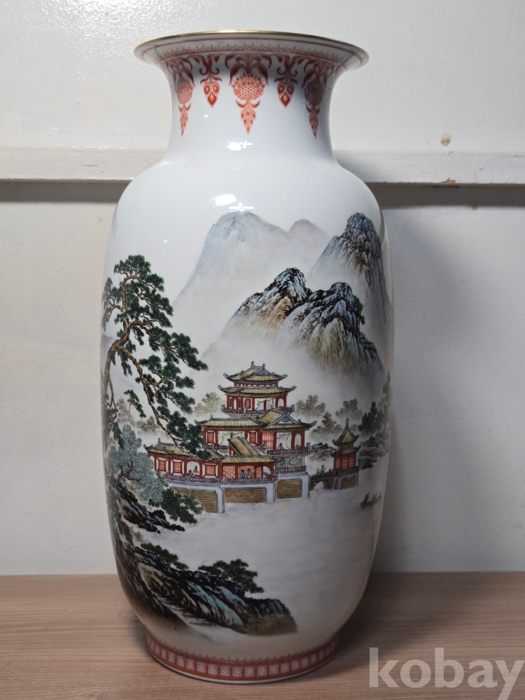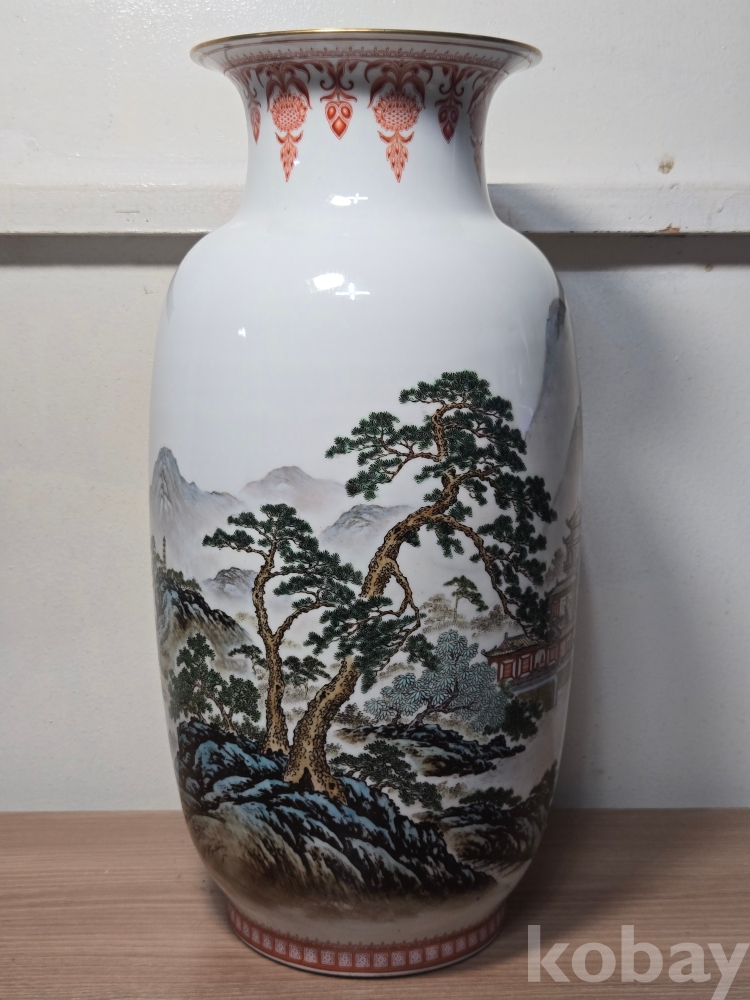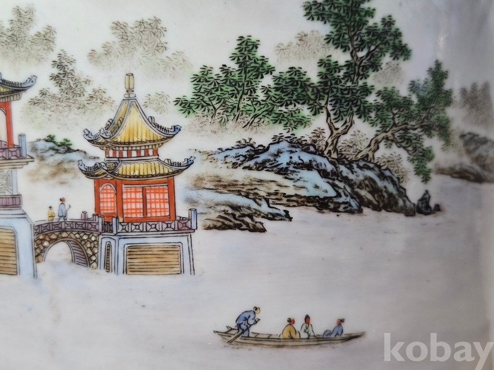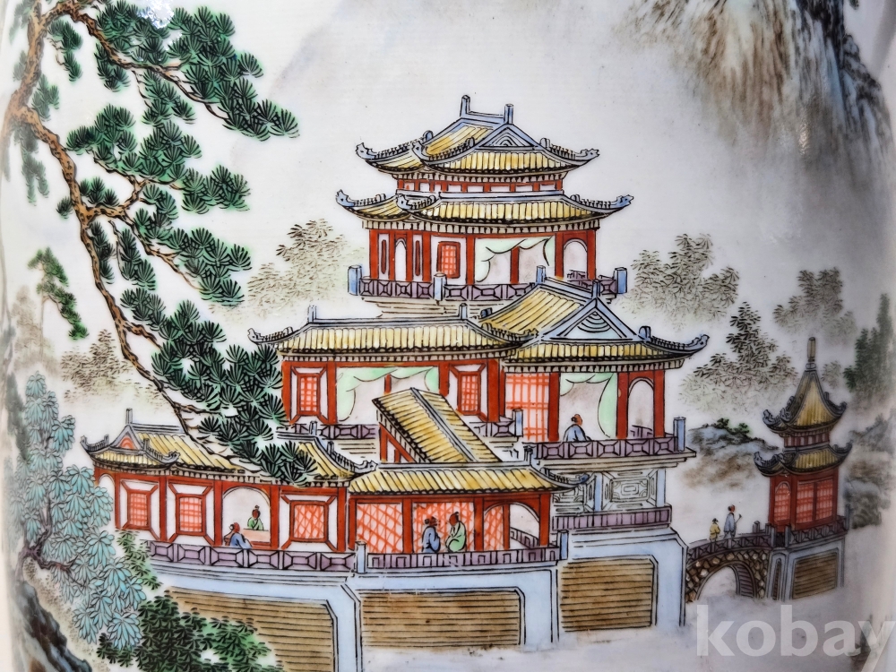 장쾌한 산수누각문이 치밀하고도 정교한 법랑채안료로 그려진 대청건륭년제 산수문대관 大淸乾隆年製 琺瑯彩山水文大罐입니다.