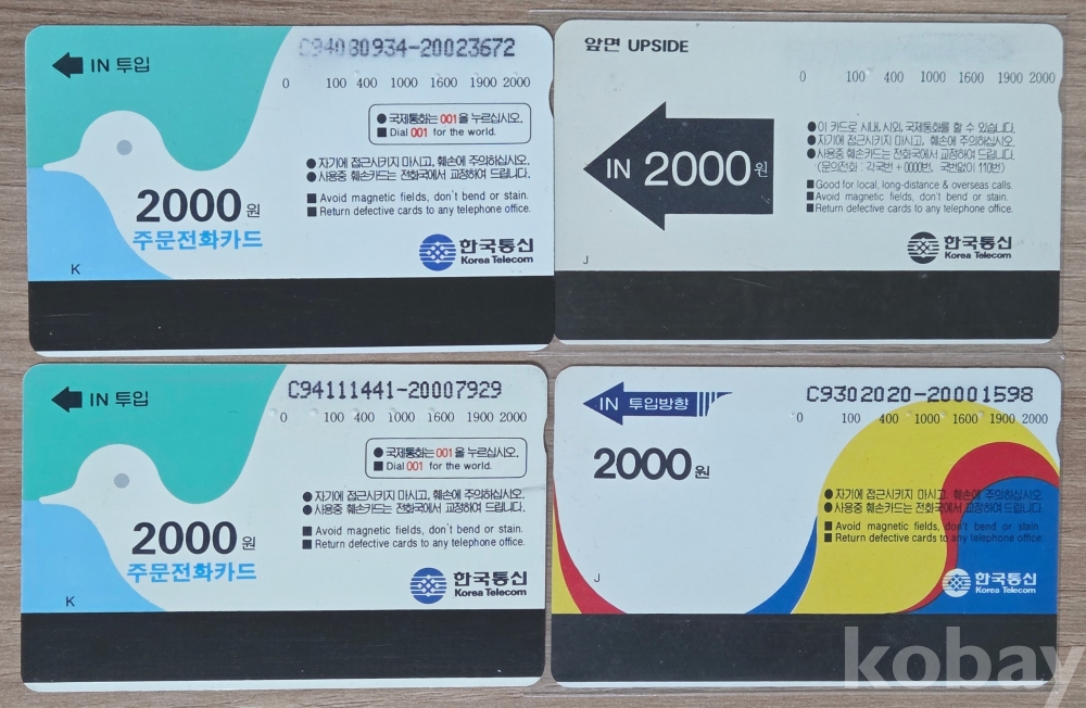 8-90년대 제작된 공중전화카드 4종일괄입니다 (사용제)