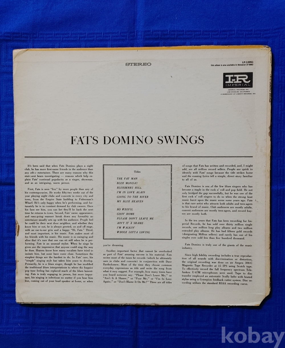 팝 락 / 블루스 소울 / Fats Domino 앨범입니다 / 트랙은 별도로 제공합니다 / Nm / 미국