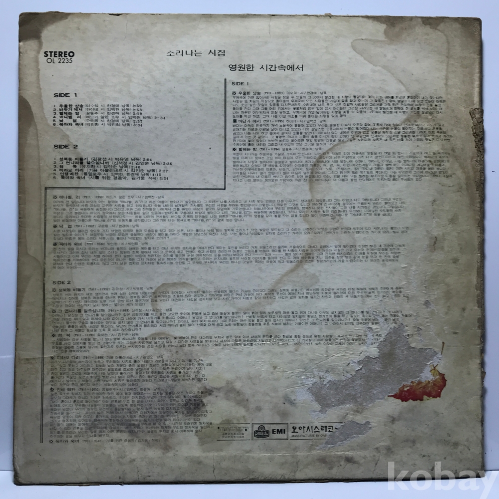 LP 83,850-6 소리나는 시집 - 영원한 시간속에서 . 자켓 VG 알판 VG+ 80 년 국내반