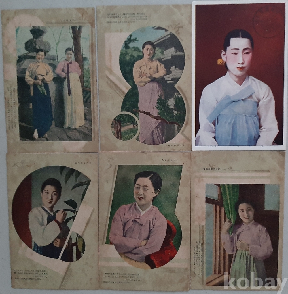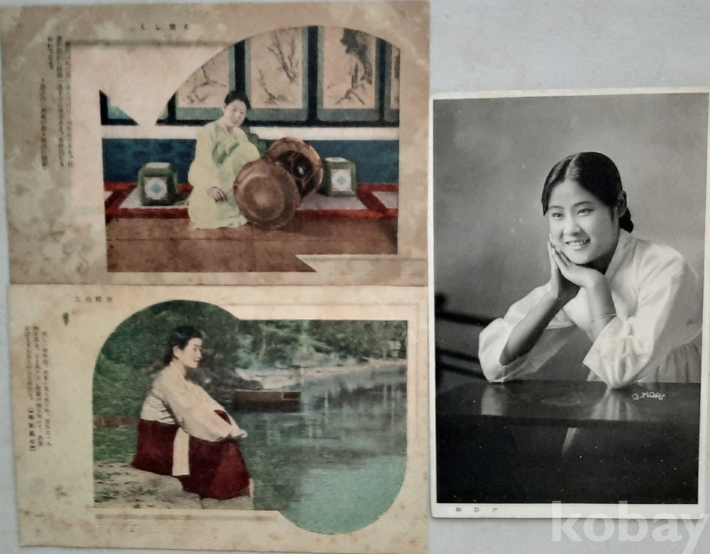 일제강점기 미사용 희귀한 채색기생사진엽서 8매, 일제강점기 미사용 흑백사진엽서 1매,