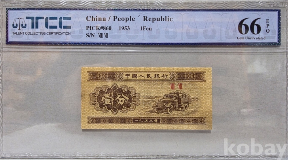 -1953년 중국 소액보조 분권 1분 지폐 TCC66 고등급 입니다.
