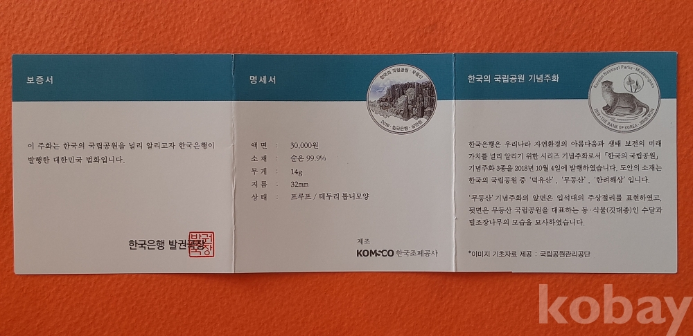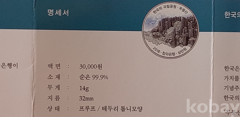 액면 삼만원, 소재 Ag 999, 무게 14 g, 직경 32 mm, 상태 프루프(마지막 사진 참조)