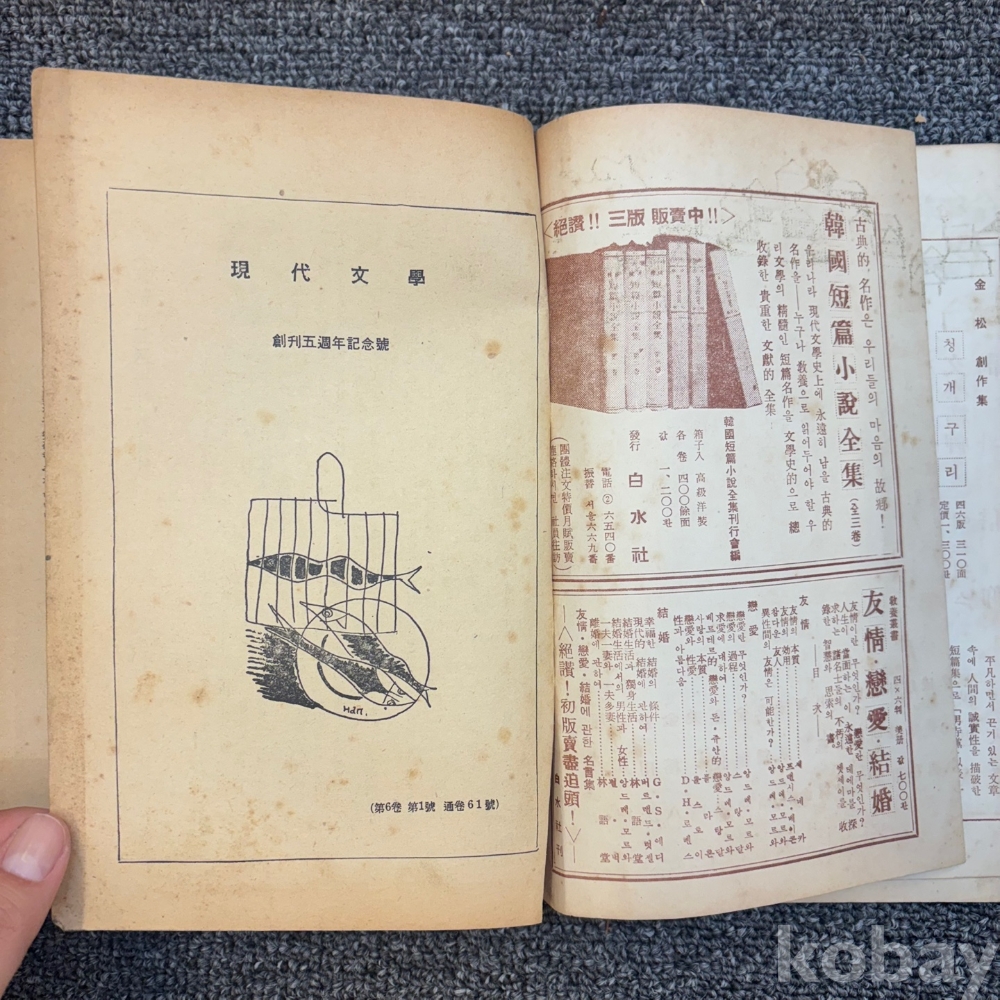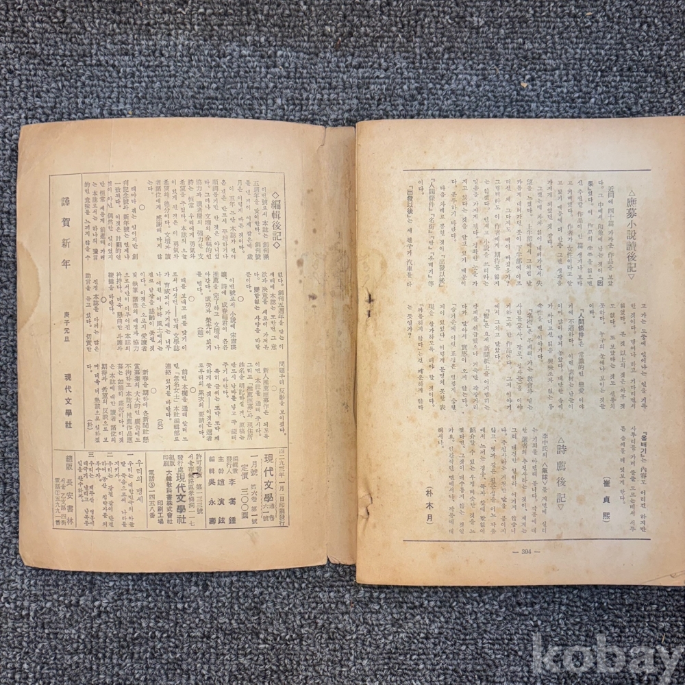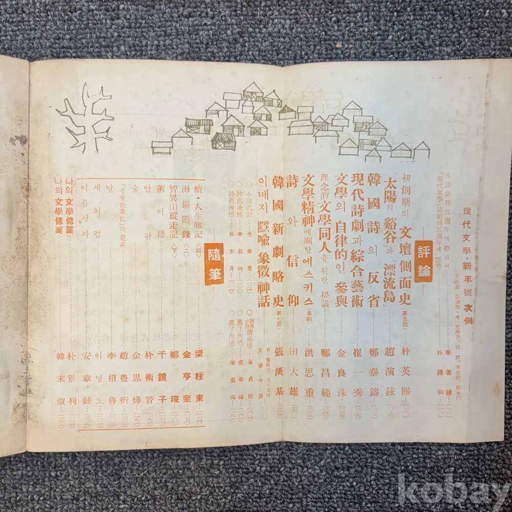 [한국현대사, 제1공화국] <현대문학 1960년 1월호 신년호 : 창간5주년기념호 표지화 장우성>, 현대문학사, p. 304, 상태 중하급(사진참조)