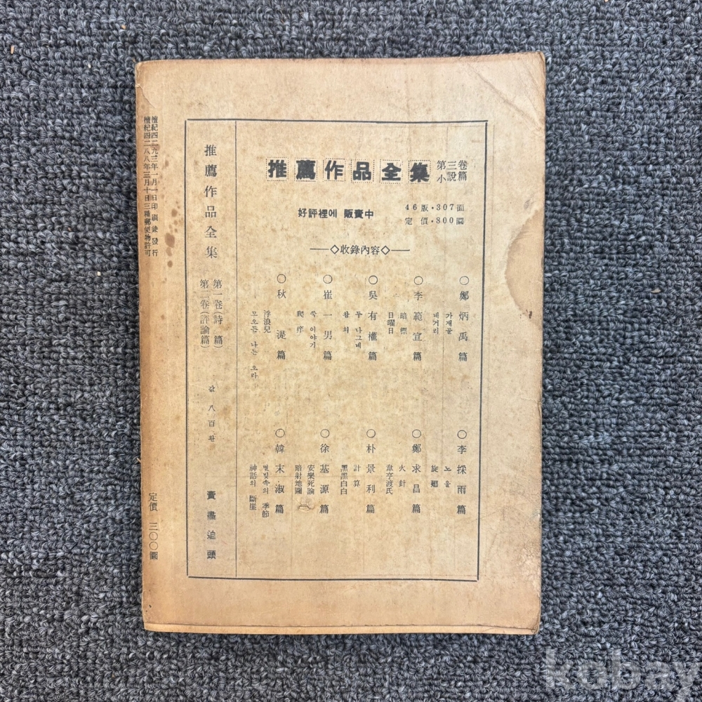 *60년대 이전 포함 ~ 80년대의 옛날 책들의 <낙장, 세월의 흔적, 훼손> 등은 경매 시작가격이 그 상태를 반영한 가격이기 때문에 해당 사유로 반품 불가하오니 감안하시고 입찰 부탁드립니다. 이 와 같은 사항이 구매 결정에 중요한 사항이라면 입찰을 피해주시길 부탁드립니다.