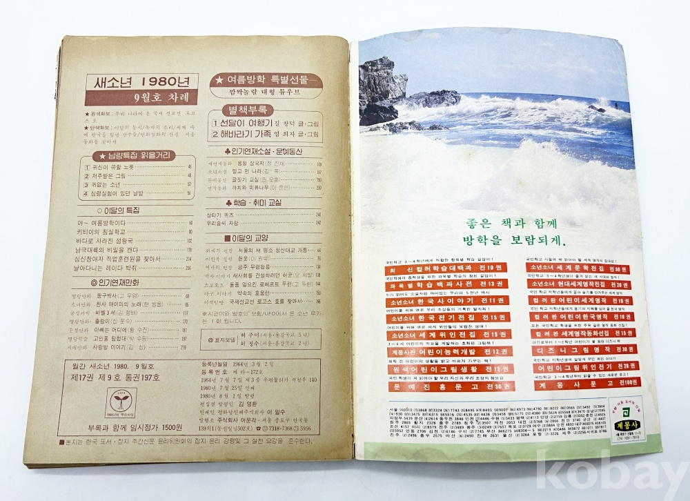 상품 설명 | 1980년대 어린이와 청소년 사이에서 큰 인기를 얻었던 '새소년' 1980년 9월호 여름방학 특별호이다. 총 244p. | ||