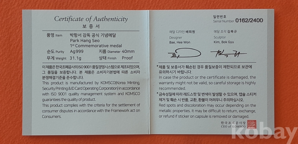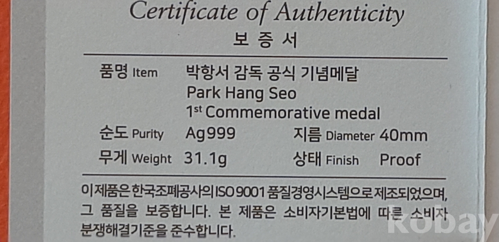 | 물품 크기 | 기념메달 |