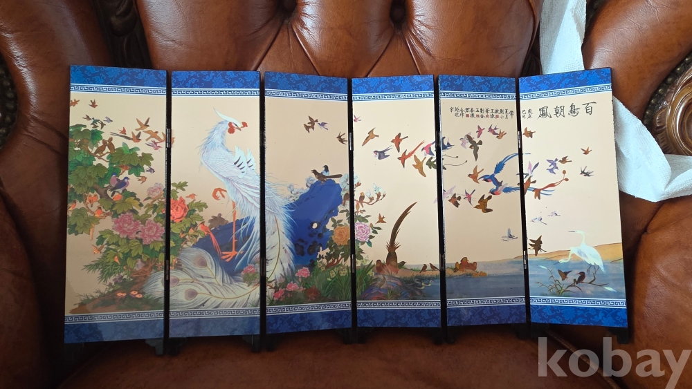 회조도가 있는 6폭 접이식 미니 병풍 ㆍ