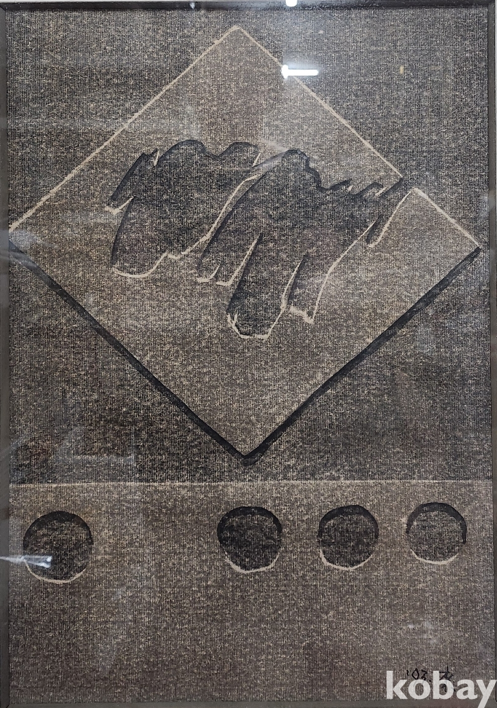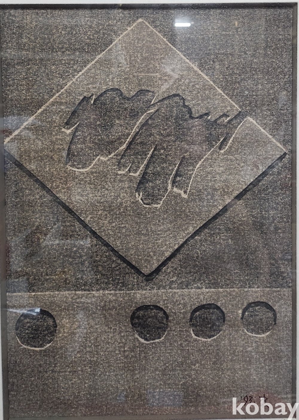 "93 來" 사인이 보이는 특별한 미술품입니다,