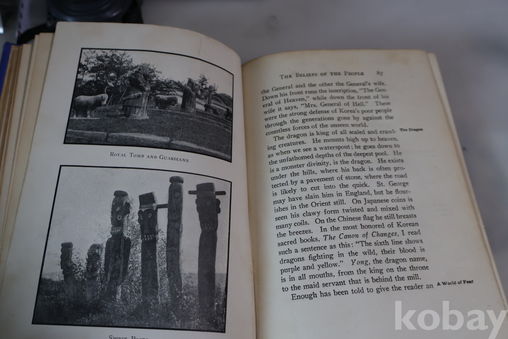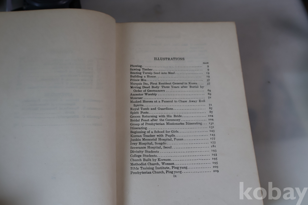 1909년도 발행 게일 목사님의 책임니다 270페이지에 걸쳐 당시 조선의 과도기? 등을 귀한 사진과 힘께 만든 귀한 책 이며 표지는 세월의 흔적이 보이는 초판본 임니다 영어책 이며 당시에 전 세계에 조선을 알린 귀한 명저 임니다 KOREA IN THE TRANSITION 제임스 게일 세월의 흔적을 가진 낙장없는 명저 임니다