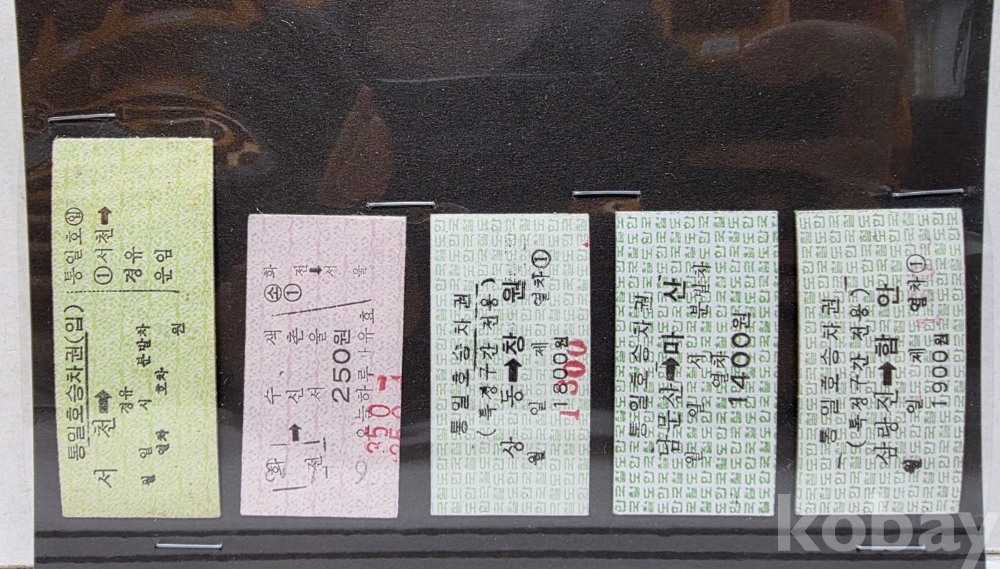 -기차, 지하철, 버스표등 다양합니다.