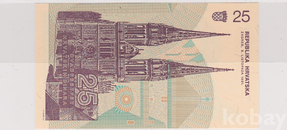 나라 : 크로아티아 액면 : 25 디나르