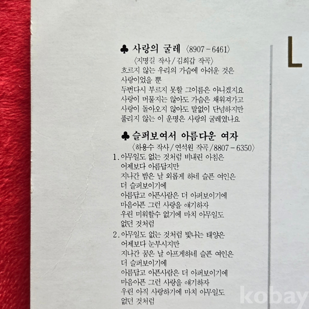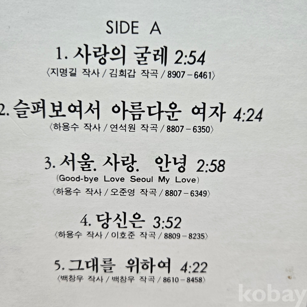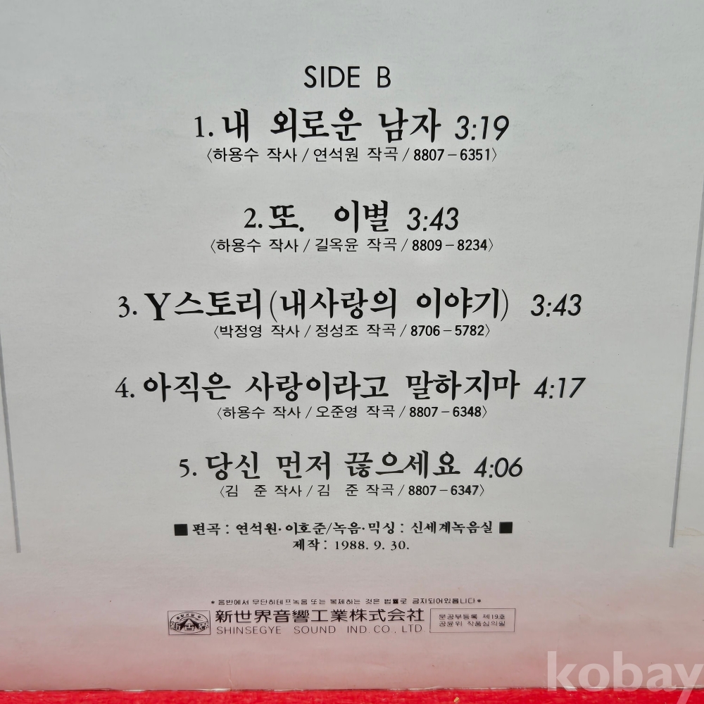 | 자켓상태 | EX : 약간의 마모, 모서리 찢김 존재 | 음반상태 | NM : 개봉했으나 미사용급, 스크래치 없음 | 발매정보 | 초반 | 가사지여부 | 무 |