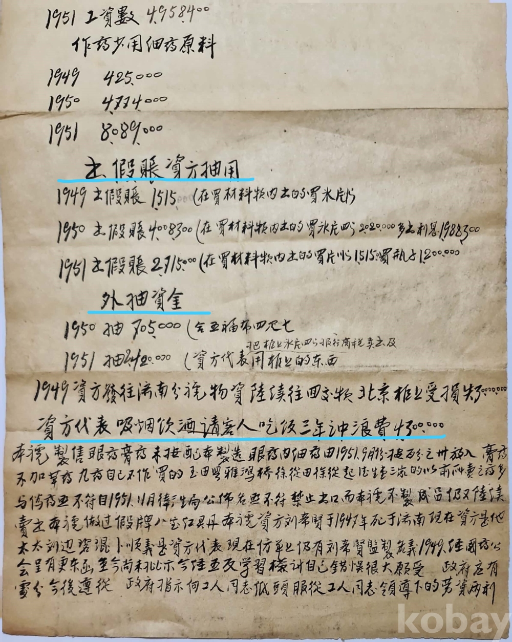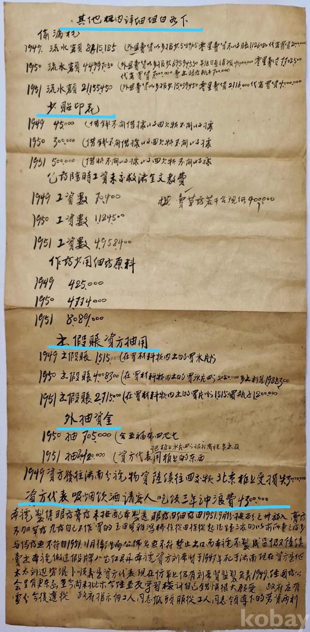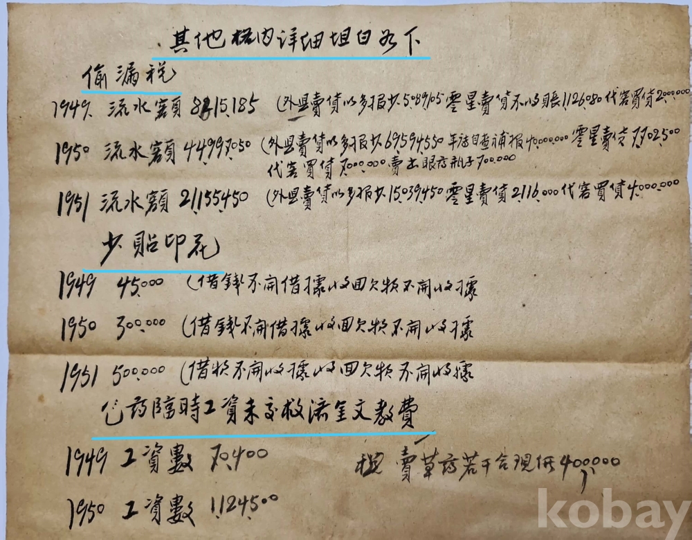 ◈ 1949년부터 1951년까지 탈루한 세금 금액,